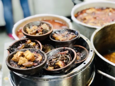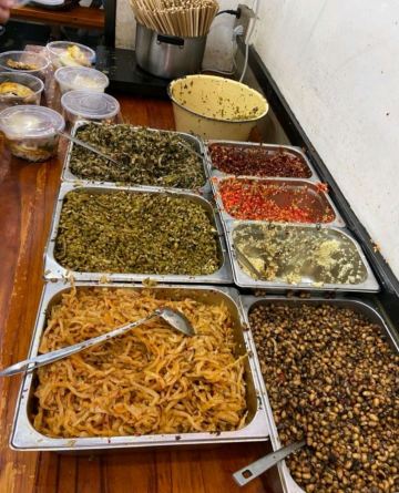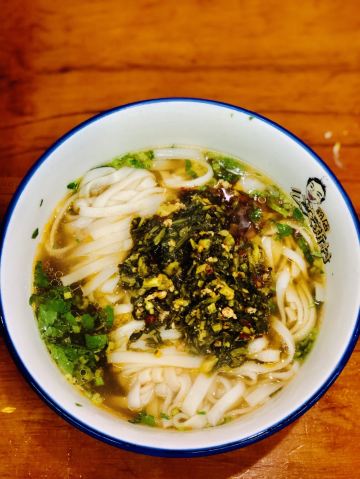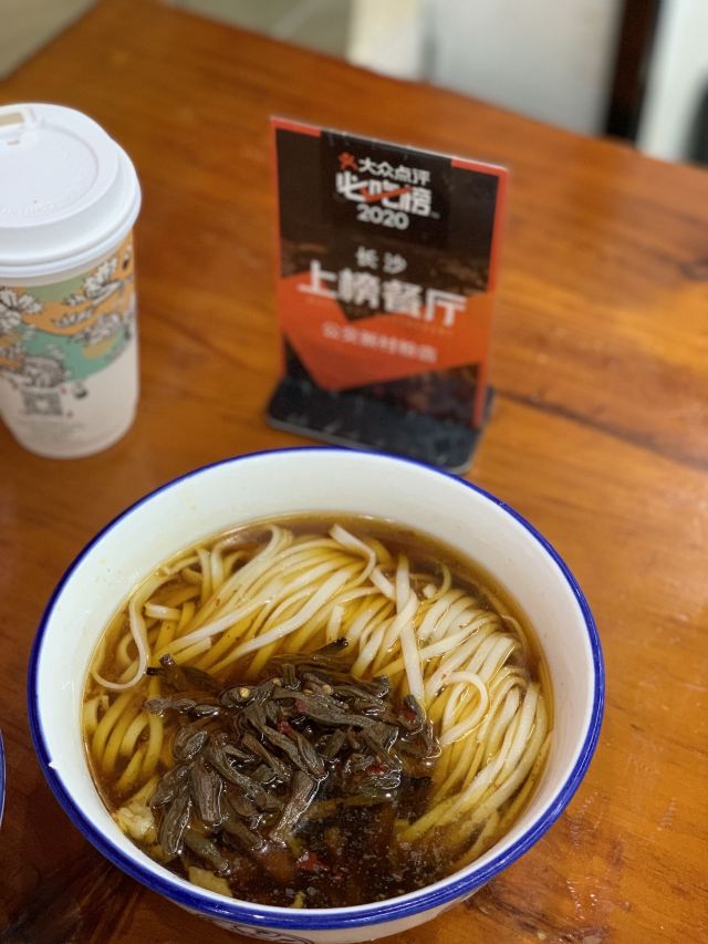 摩小亚对于10月,跨越四个省,吃了很多很多家不同老字号粉店的小亚来说。 这家粉店让我有些失望了,也或许是我对它期待太高了,也有可能是本身这个口味不是我的菜。 总之就是,还好我没怎么排队,不然肯定后悔惨! 我俩是一个普通的周四早餐时间去吃的,大概10点左右吧,小小的排了几分钟,并没有很夸张。 但是店里的生意是真的很好很好,翻台率很高,看起来它是真的很受大家喜欢。 【雪里蕻粉】9元 粉比较粗,比较像成都的棍棍面那种,但是口感软糯细滑,吃得出是米粉特有的口感。 汤头略微一点油,雪里蕻炒了少少的肉沫,然后旁边有很多咸菜可以自己随便加。 建议咸菜适量加,因为多了还是会咸的哟。 味道普普通通吧,没啥特别啊,不太合我这个重口味星人的口味。 【豆角蒸肉粉】12元 干豆角蒸软了,但是肉我是真的没看见多少,但是这个价格确实也不该有很多肉。 只是那个名字蒸肉,让我以为是一份粉蒸肉盖在粉上面呢,我错了。 还是和上面差不多的味道,没什么特别。 确实是没吃完,这一顿让我对湖南的米粉略显失望了。还好后面吃了刘百味粉馆,瞬间觉得重燃信心呀。