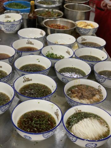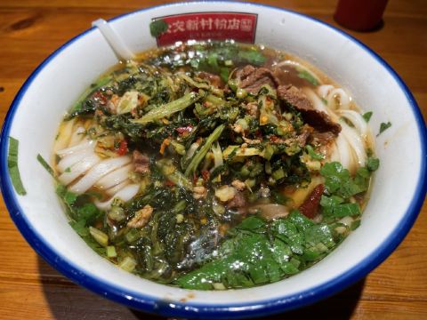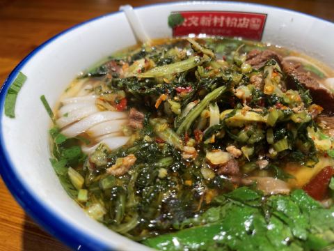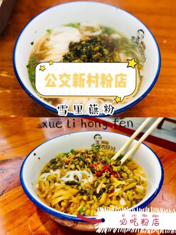GONG JIAO XIN CUN这家算是国庆期间排队没那么严重一家网红店 也许这种粉店出餐比较快的原因吧 不过当天还是有顾客因为排队吵了起来 交通: 离五一广场还是有一定距离 公共交通还是比较方便 门口北侧就是公交站点-公交新村,多路公交直达 不知道是先有粉店还是先有公交站 环境服务: 空间还是蛮大的,服务员收餐的频率也算比较及时 早上不太需要等位 「牛肉雪里蕻粉」 饭还没吃,先学了一个生字-蕻(hóng) 也是第一次知道原来雪里蕻就是雪菜 还以为可以尝试一个新品种 牛肉炖的很烂很入味 相对来说,粉煮的好像有一点点过了 没有特别惊艳,不过还是可以来尝试一下