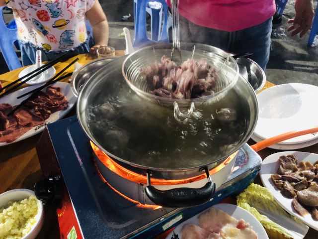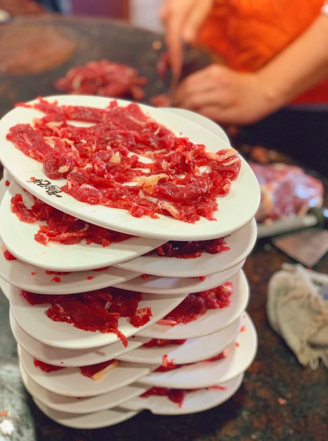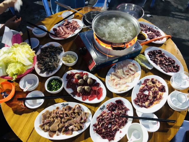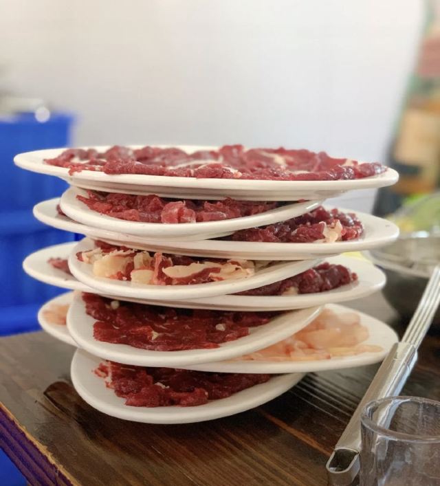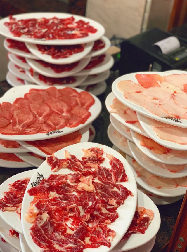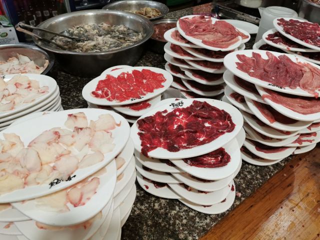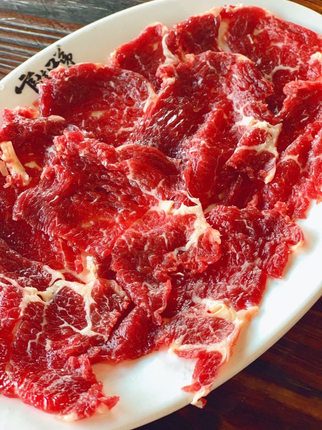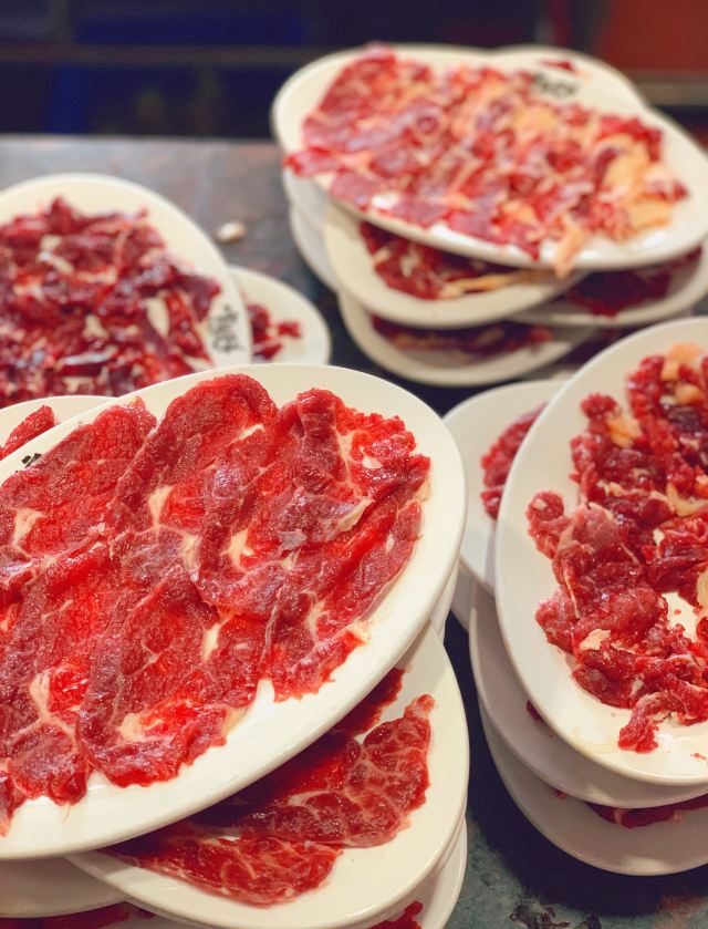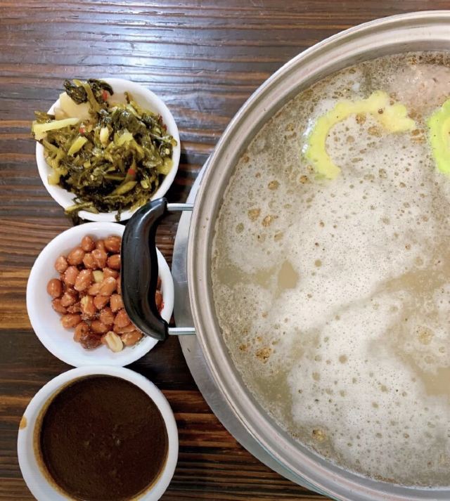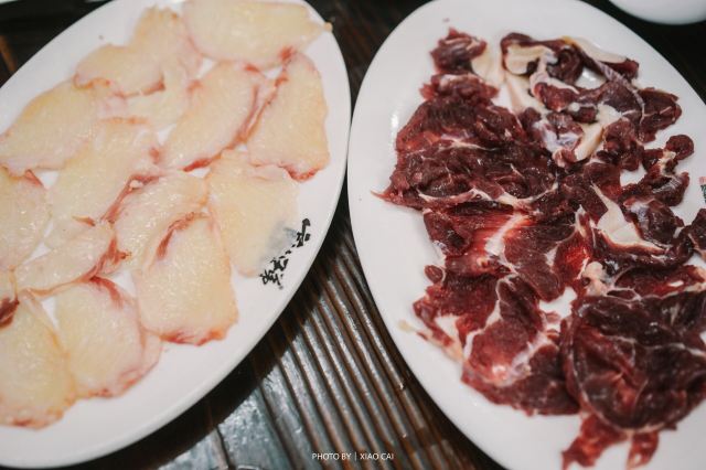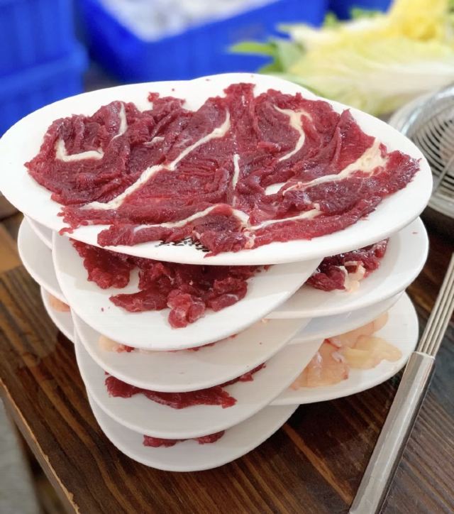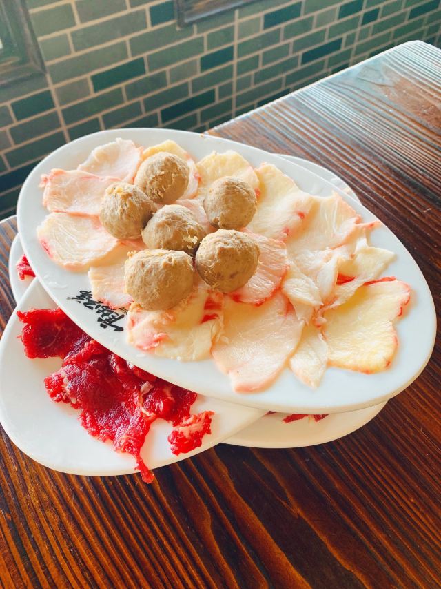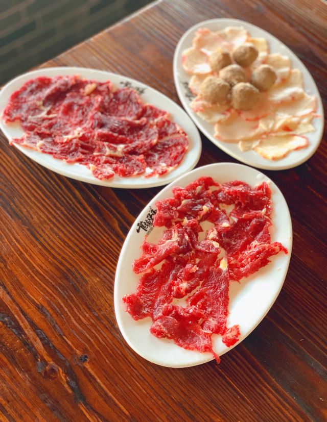 GUAN TANG BROTHER🌈官塘兄弟牛肉店可以说是潮州最红的牛肉火锅了,主打的是现杀的鲜牛肉,不仅牛肉新鲜,价格还非常美丽。 🚗餐厅的位置还是有点偏的,我们住在潮州古城里,从广济门打车到餐厅,去的时候42,回来51,我们吃一顿牛肉才151元。 ✅我们是元旦中午去吃的,12点50到了,等了15分钟就坐到座位。 🌿环境:餐厅有上下两层,一楼都是小间间小隔间,走的是古风。 「清汤锅底」锅底真的好便宜,只要10元。 「牛筋丸」牛筋丸一份6个15元,和牛肉丸价格一样。本来想让店员给我们搞三个牛肉丸,三个牛筋丸的,店员说不可以。牛筋丸还是很好吃,q弹q弹的不说,味道也好吃,我潮州大概吃了6家牛筋丸,他们家可以排第二。 「雪花牛肉」点了雪花,嫩牛肉,吊龙,最爱雪花,略带甜味,很嫩,有点油脂,非常好吃,吃了半盘也没觉得腻。 「嫩肉」肉质和口感都不如雪花,稍微柴了一点,有的部位咬上去筋筋拉拉的。 「吊龙」吊龙也好吃,也很嫩。 「胸口朥」这个东西不知道怎么煮,我广东的朋友推荐的,开始煮了2分钟就吃了,感觉好油,后面多煮了一会儿也没觉得多好吃。总感觉打开方式不对! 👩🏻🍳服务真的很一般,第一次来,一脸懵逼,都不用点锅底,清汤锅就端上来了.上菜时,肉是一起端上来的,也不告诉你,这是那个部位的。由于一开始桌上放了一碗沙茶酱,我以为只有一种调料可以吃,后面看到其他客人端着着调料过来才知道原来还是有调料区的。 🌸总体来说,味道和性价比都是好的,牛肉均一价都是29一盘,我们两个人4盘牛肉一盘牛筋丸,加饮料锅底什么的,一共吃了151.