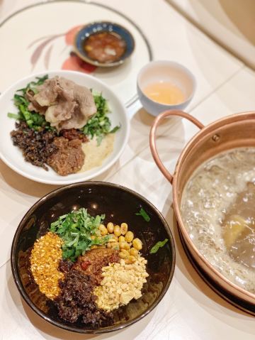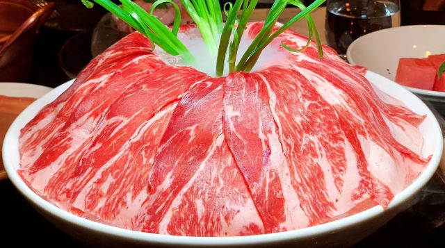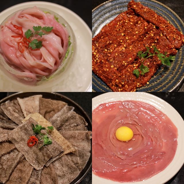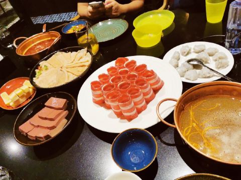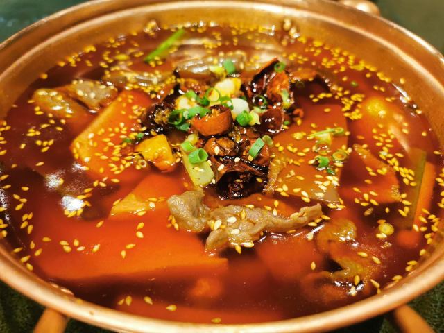 手工面,金黄酥肉,草原黄毛肚,澳洲和牛上脑M9,麻辣牛肉,鹅肠,虾滑,牛油锅,乌鱼片,嫩牛肉,传统红糖糯米糍粑