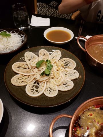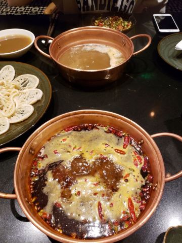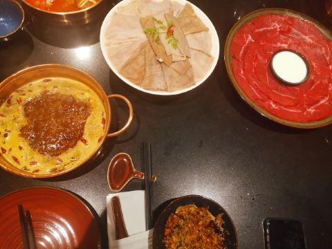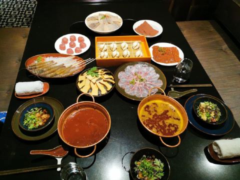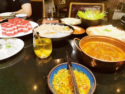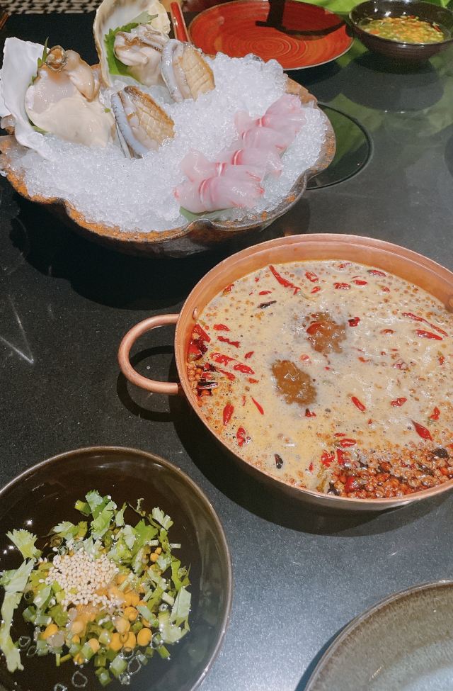 #8 HOTPOT RESTAURANT总评: 如果是宴请的火锅餐厅推荐,小亚我必定会首推8号火锅。 首先,餐厅环境好,整体设计很有意思,再就是服务也没话说。 火锅的味道也是不错的,特别是白锅,那真的是很特别棒。 食材新鲜,摆盘精致,特色自助调料台也是亮点满满。 除了宴请,自己和朋友小聚,家人聚餐都是不错的选择哦。 评分:84分 性价比:❤❤❤ 有别于外面吵吵嚷嚷的火锅市井气,这儿吃火锅也可以很优雅很闲适的呢,关键是吃完火锅身上还不会有余味残留,免去很多尴尬。 餐厅是一人一锅的小锅制,方便也卫生。 锅底推荐: 【养生松茸山鸡汤】这个锅底,真的是太棒了,那个汤我可以喝十碗,还没开吃,已经灌饱的节奏,鲜美浓香,很自然的高汤滋味,跟那些添加剂熬的不一样哦; 【老成都麻辣牛油锅】这个是可以选微、中、特辣三种辣度的,虽比不得正宗的重庆老油滋味,但是总体来说还是不错的,香味足,辛辣够味; 菜品推荐: 【鸭嘴鲟】扁扁的嘴巴真的很像鸭子,多可爱的一种鱼,肉嫩且细腻,没什么刺,鱼片放在沸腾的锅里,10秒左右就可以吃了,口感很棒! 【澳洲和牛上脑M9】【澳洲安哥斯肉眼】这两款牛肉片是真的还不错,看质地看雪花分布都挺漂亮的,口感自然是一般肥牛卷不能比的啦,烫十几秒即可; 【贵州竹荪】这个超级适合煮白锅里,饱吸汤汁,入口爆汁,鲜嫩滑口,白味就足够美好; 【海鲜拼盘】特别丰盛,品质也很好,大颗饱满的带子、鲜活的空运生蚝、新鲜的大鲍鱼等等,麻辣火锅里煮海鲜,别样的体验,也超赞的呢; 【招牌海鲜饺】特别可爱的饺子,一颗颗大小一致,大肚海鲜肉馅儿感觉都快爆出来了; 【黄毛肚】【鲜鹅肠】这些都是活该必点项,发挥不错,品质可靠。 【雪梨炖桃胶】这个超级推荐的呢!即便是在吃得很撑的情况,我也没忍心浪费一点。雪梨炖得入口即溶,桃胶软软滑滑的,清甜可口,温润滋补。 蘸碟调料: 大概有20几种不同口味的调味料,可以供客人自己搭配。很多都是大厨秘制的酱料,建议可以多调制几种,每一种味道都尝尝,找一款最喜欢的。 我个人来说,很多酱都挺喜欢的,所以吃调料都吃了几碗。 服务,店员的服务都挺贴心的,菜品介绍也很到位,包间环境也舒适典雅。 好吧,就这样了。个人去体验一下吧,偶尔火锅也是需要一场仪式感的。