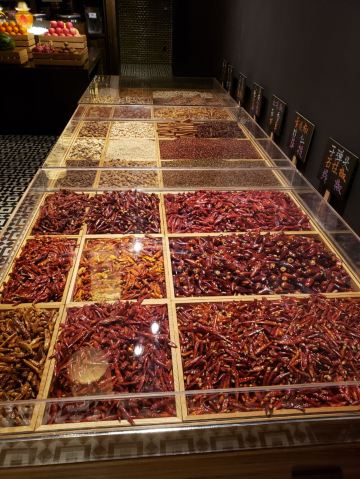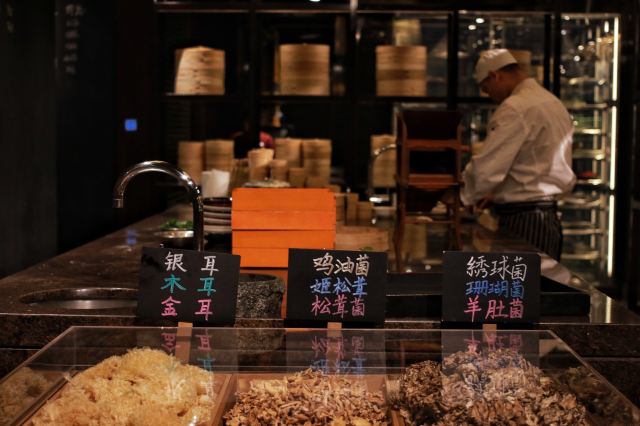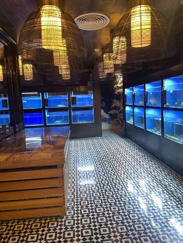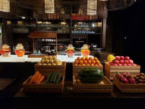 走进餐厅,你会穿过一条琳琅满目的“集市”,各式新鲜的肉类和生猛海鲜等一一呈现在你眼前,还能直观地看到厨师准备和处理食材,整个过程赏心悦目。