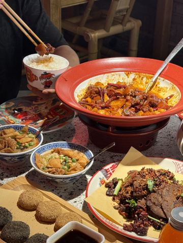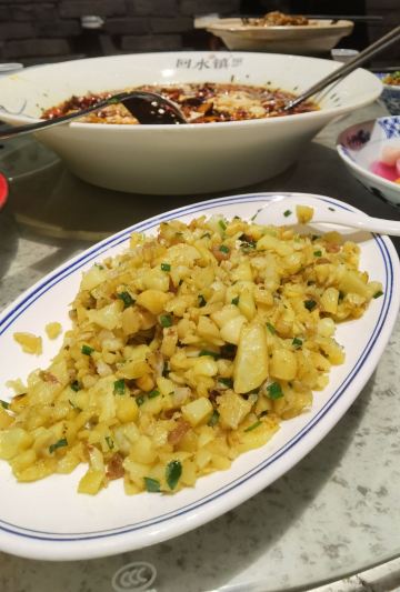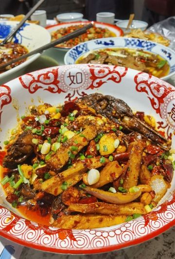 在成都排队排到腿抽筋的江湖川菜 店名:回水镇·江湖川菜(春熙路太古里店) 位置:武城大街7号-9号 份量特别的足,盘子和碗个个都比脸还大,而价格很亲名。 首推 【黑豆花🌸水煮鱼】手工黑豆花口感细腻又软嫩,鱼片无刺鲜嫩搭配特制的调理鲜香麻辣特别好吃。 【砂锅白果炖鸡】性价比超高的鸡汤89一份,汤汁浓郁,鸡肉炖得软软的老少皆宜。 【锅边馍】【石板米饭🍚】【泡哥泡菜】都是店里的亮点,点了不后悔。