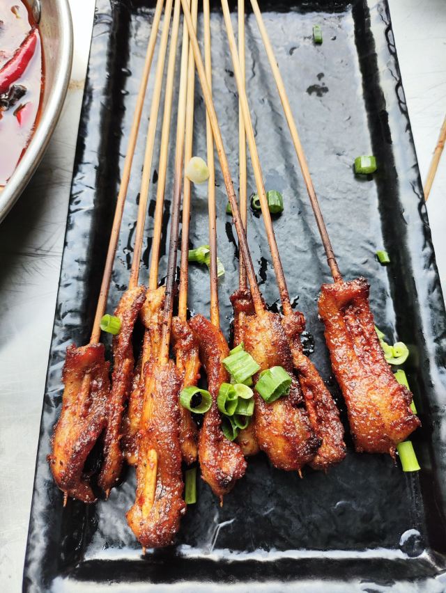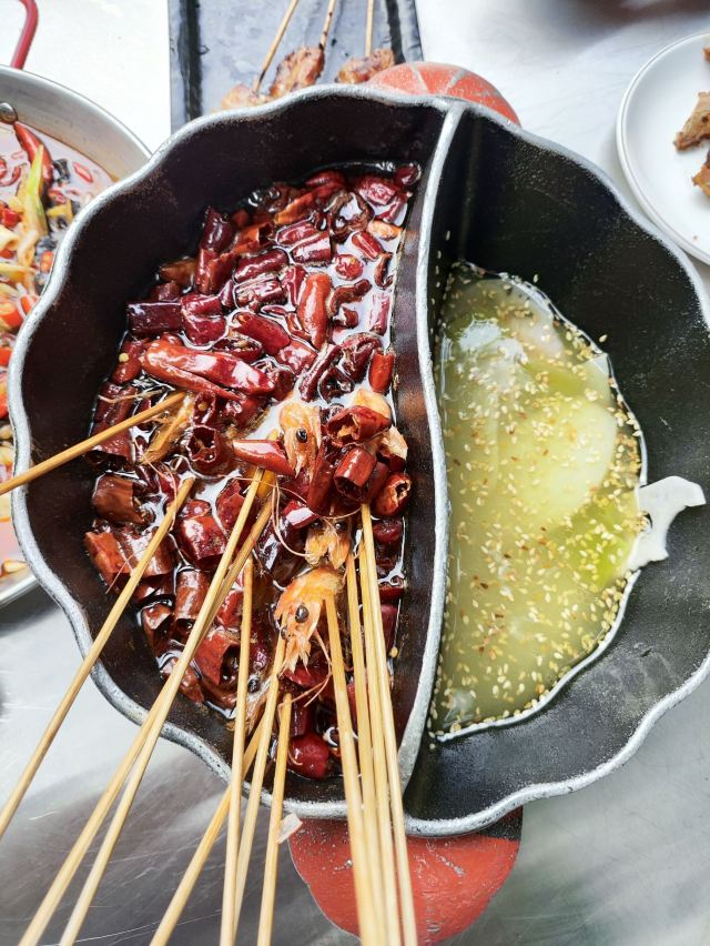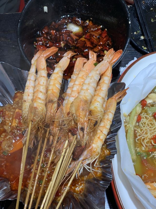 桃子妖妖妖虽然环境差强人意,但东西是真的好吃,所以五星好评。 这家开到哪火到哪的川菜馆子我已经种草四年之久了,找个机会前来拔草。他家开在成都的几家店几乎都是所在区域川菜榜排名第一,好像只有一家排名第二的,这要是在外地也就算了,可是这些店都开在成都,可真是奇了怪了,大家的口味怎么可能这么统一? 同行的小伙伴很用心,点的都是我种草很久的菜。 炭烤五花肉、炭烤蒜香排骨,都很好吃,本来这是很简单的事,因为烧烤很容易做好吃,但考虑到他家是一家川菜店,烧烤是副业,这块儿还是要特别表扬一下的。 最喜欢的是爆炒子姜黄喉,黄喉的脆爽和泡椒的香辣完美融合,连配菜都吃光光。 石爆双脆口感脆生生的,很好吃,看起来红油很多,实际上并不辣,口也很淡,感觉更健康一些。 裸奔坨坨虾和钵钵鸡以鸳鸯锅的形式呈现,很新颖,事实证明,这样搭配起来也很合理。虾很新鲜,去皮食用更方便,也更入味,吃几口虾,再吃另一边的钵钵鸡,对口味是个很好的调剂,口感更丰富,层次更分明。 兔脑壳没货,推荐我去点了马路对面的邓兔头,味道还可以。 拜华润所赐,没有当地啤酒,尝试了大瓶的雪花脸谱,味道还可以,冰镇啤酒跟川菜是绝配。 整体上来说很满意,不负我四年期待,好评,推荐给大家。