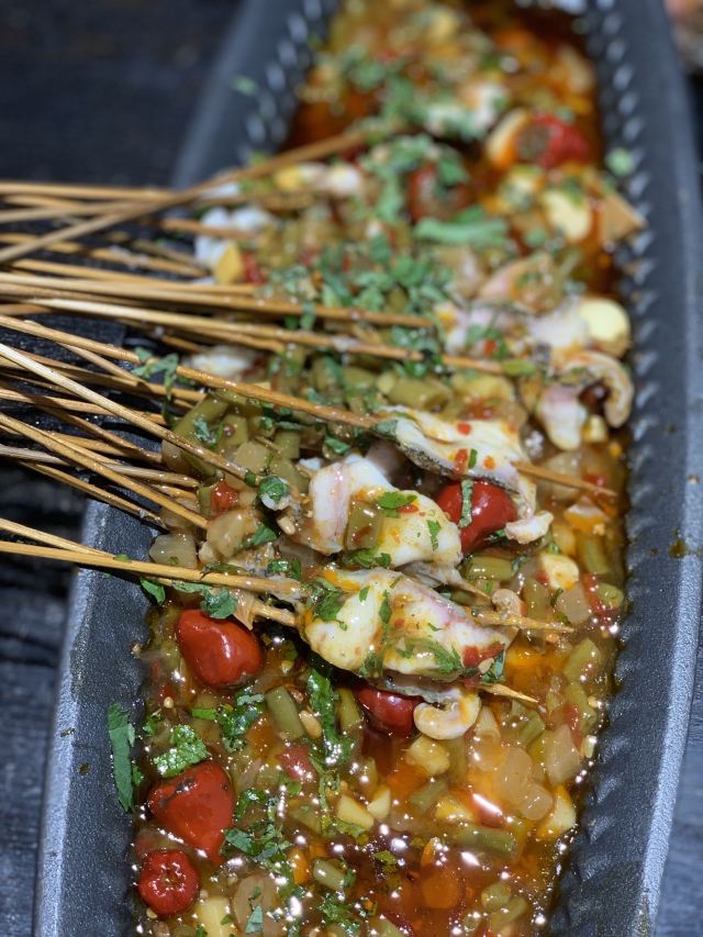 裸奔坨坨虾,捞汁花甲,鸟巢掌中宝,炭烤五花肉,剥皮虾,特色烤大茄,特色烤鱼片,豆花,兔头,吃客麻辣兔头,桂花酿小番茄,铁板包浆豆腐,炭烤蒜香排骨,鸳鸯水煮牛肉,纸上焗鲜鲍,火爆仔姜鱼肚,绝情蛙,回锅肉,钵钵鸡,串串香,冒菜,红糖糍粑,冰粉,济公鸡杂豆腐,小时候糖醋排骨,豆捞烂稀饭,烤冒火脑花,鸭脑壳,超辣鸭头,水煮牛肉
