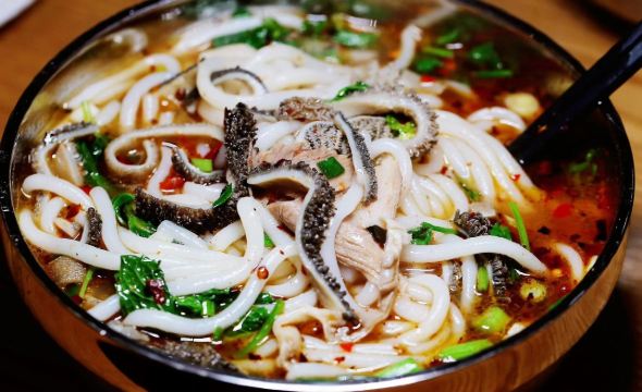 这家在成都开了不少年头的盐边羊肉米线,中午人很多,一看就是老顾客,大多数来自于攀枝花西昌一带的朋友,会不会吃就看自己的调料怎么放,一勺子花椒粉和两勺子煳辣椒粉,最后夹一筷子鲜薄荷叶,才是攀西米粉的灵魂,只有当地人才会喜欢烫生薄荷叶,那种清香代表了一个地方的口味差异,这家不算差。