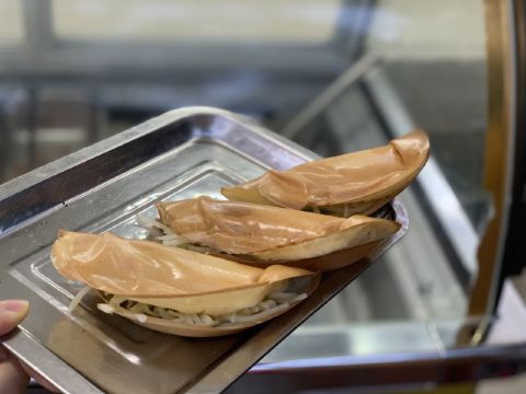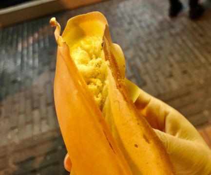 伊來奎星楼这条街真是不能随便逛,必吃榜太多,逛着逛着就变成逛吃逛吃了。这不,吃完饭溜达着就看见这家了,好吧,来个饭后甜点。 [环境] 立等可取没有堂食。 「巧克力」 皮边儿焦酥,里子绵软,巧克力香甜,热气一烘,全化在糕里了,人也一起化了~ 「草莓酱」 草莓香味很浓,比巧克力温柔许多。 [服务] 大叔手艺不错,还会提醒自己夹怎么咬,不错。