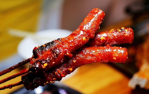 我去吃感觉非常好,包浆豆腐的折耳根经过处理混合在豆腐上面,一定乘热吃,里面细嫩外皮有嚼劲;烤猪小肠,因为烤的比较焦脆,下酒特别干香;折耳根烤鱼,外地人不敢惹的东西四川人大爱,烤鱼上面淋了复合味的香辣油,吃完再把折耳根叶子烫熟接着吃,可以说比很多专门的烤鱼店好吃的多;烤脆肠也不可错过,有着炭火的香味。