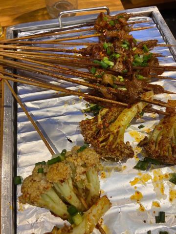 作为宜宾人,客观评价他家烧烤总体还是不错的,相比之下比宜宾的烧烤味道略淡一些。1天味香肠,网上都能买到,自己烤也是那个味道,重点是辣椒面要买对2土豆薯片,麻辣脆脆,比买的那些薯片都好吃3把把烧一类,点了半壮牛肉羊肉串这些,都烤得有点干,太难嚼,素菜更好吃一些,玉米,口蘑这些更好吃4金针菇,,一定要加醋,加醋,加醋,重要的事说三遍!!我不是爱吃醋的人,但是每次烤金针菇加醋真的一绝,相信我!5生蚝,个头很大,我不爱吃没尝,朋友说蒜蓉酱少了,肉还是多6脑花,虽然不是特别嫩那种,但是味道很好,里面还有肉沫因为之前在华宇吃过宽粉这次就没点了,上次华宇味道偏淡,温江相对重一点!对了,买代金券很划算!!
