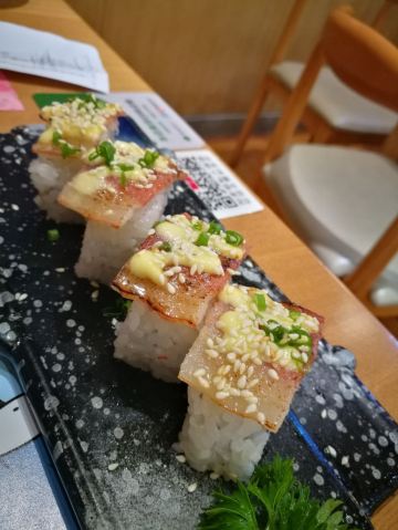 记得以前吃过他家其他分店,这家门口就是停车场,停车到还是挺方便的。店面挺紧凑的,基本上都是四人座,适合三两朋友小聚。推荐他家的鹅肝寿司,很嫩很香口感细腻。