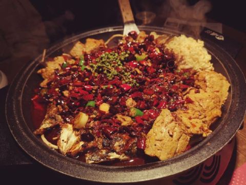 被这家宣传语吸引 到成都不吃火锅就吃烤匠?? 好吧 真的是如此 可以提前1小时手机排队 烤鱼 4人评价 不是很辣但是挺麻 麻完还很过瘾 鱼点的江团 肉质没问题 就是量应该适合2-3人吃 小吃 芝士红薯 好吃 推荐 包浆豆腐也种草 喝的 都是自家自制果茶 然后就是啤酒 这一站没有踩雷!没有辜负宣传语!