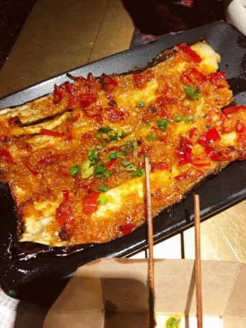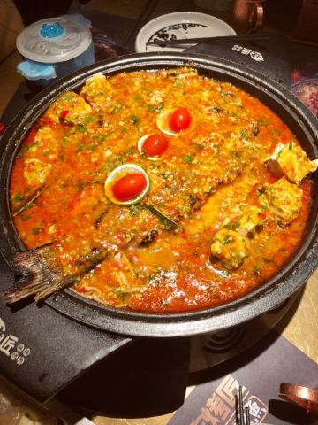 YoYo_9T3Q1Z8L周末晚上去的,也没有排队,人不是很多。第二次吃烤匠,上次点的酸菜的,这次吃的招牌麻辣,个人感觉还是酸菜的更好吃,就是等鱼上来的时间真的有点慢。 [环境]暗黑系,是我喜欢的用餐环境,能看到服务员正在烤鱼,吃完也不会一身的味道。 [服务]服务员没毛病,用餐的时候有个顾客撞到端菜的服务员也没有说抱歉,替小哥哥打抱不平[得意] 「经典麻辣烤鱼」麻辣烤鱼我感觉不是很辣,麻味倒是挺足的,个人更推荐酸菜味的 「菠萝小油条」菠萝小油条真的是让人沉迷了,酥酥脆脆的小油条配上清甜的菠萝,再加上沙拉酱,什么神仙美味啊 「烤茄子」烤茄子味道不错,上面码的蒜蓉和泡椒,好吃