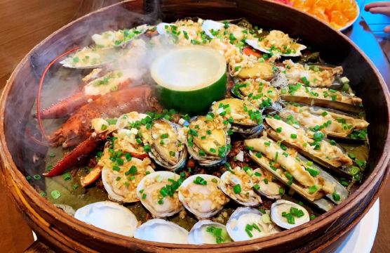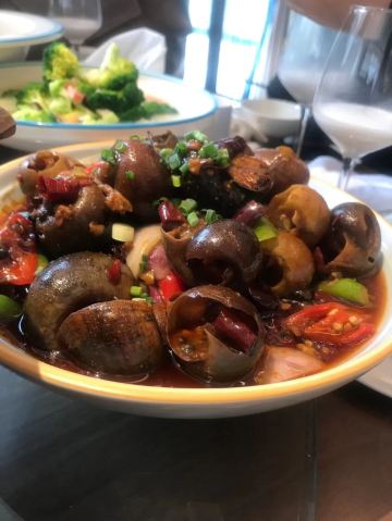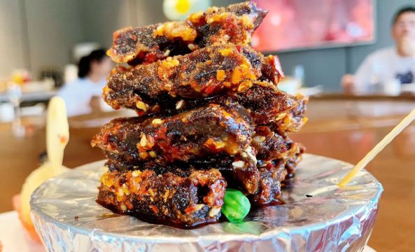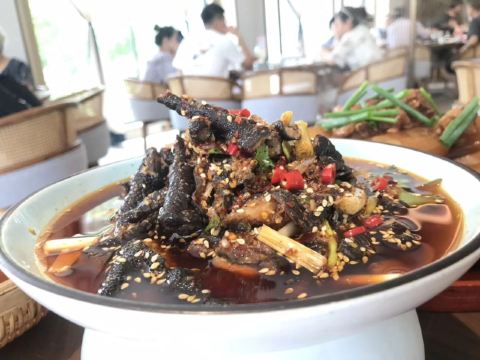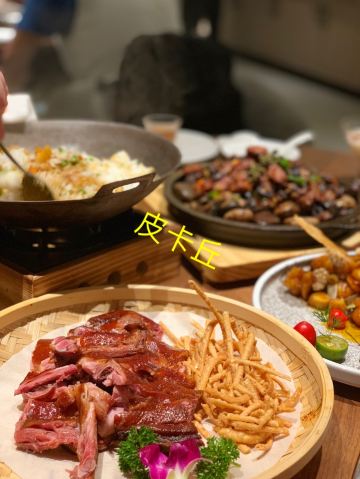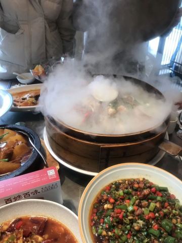 油泼水煮鱼,蒸蒸日上,烤榴莲,脆皮肥肠,老家孔干饭,芝士烤红薯,花椒馋嘴蛙,罗万油烫鸭,一顿乱炒,宫保虾球,手工圆子汤