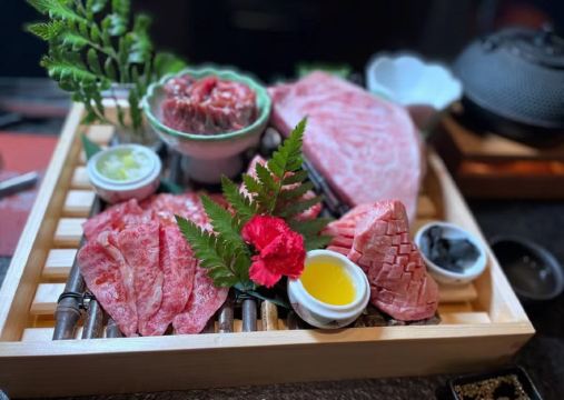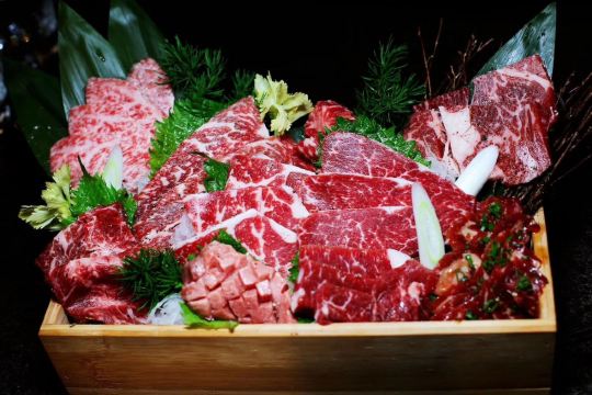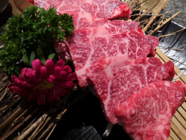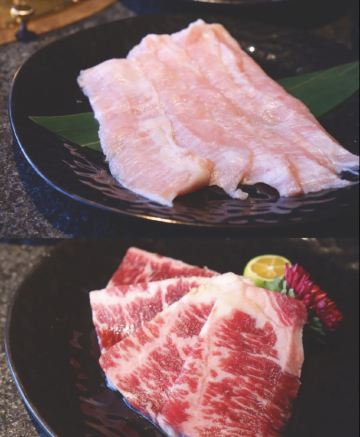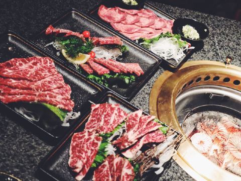 黑虎虾,和牛,秘制鸡肉,伊比利亚猪五花,横膈膜,口蘑,和牛骰子肉,和牛日式烧肉,牛舌簿切,五花肉,和牛炒饭,菊花碳火,牛舌薄切,蔬菜沙拉,特选薄切牛舌,烤肉,日式烧肉,松阪猪肉,M9 鞍下牛排,特选和牛板腱,西冷牛排