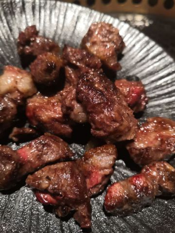 熊猫盖盖我爱吃肉肉,我喜欢武士的牛 又是一家日式烧肉店,再也不用去市区吃了 双楠就有这么一家,好吃的烧肉店 [环境] 环境不错,装修的很大气 突显高端大气的风格,炭火烤制 味道更棒 [服务] 服务很不错哟,很热情,帮忙换烤盘 给予的服务恰到好处,不会觉得很拘谨 「菊花碳火」 炭火都可以这么好看,怎么拍都好看 炭火的温度可以激发出肉的味道 「中华海草」 烤肉之前来一点海草,口感脆嫩,清爽 「五花肉」 五花肉放在烤盘上,慢慢烤 油脂慢慢溢出,渗透进瘦肉中 搭配酱汁,真的有点小时候后电烤五花肉的惊喜感 「横膈膜」 食材本身的品质很高,吃起来有劲道 「秘制鸡肉」 鸡肉提前麻料,酱汁渗入进肉质中 很香 他家的食材品质本身很不错 我个人觉得近期吃到的一家不错的日式烧肉店