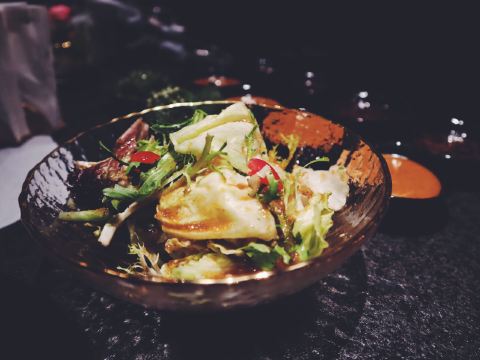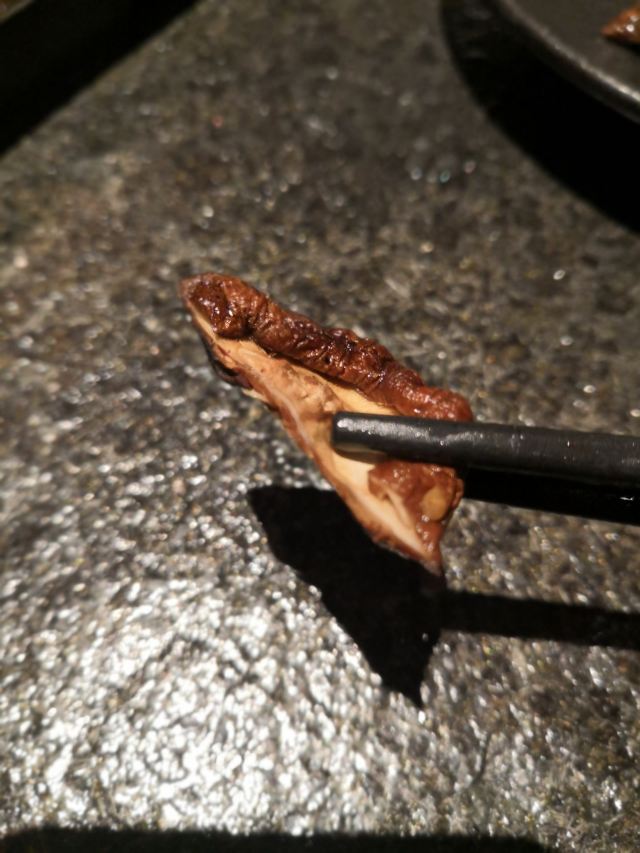 Sylviagreen烤肉的小哥哥服务非常周到且专业,从坐下到吃完,貌似换了4-5次烤盘。而且烤肉的时候,会确认你喜欢哪种口感,而掌握火候,并且烤肉过程也非常“处女座”非常赏心悦目(即便是烧烤,吃完以后,他们家也没有任何烧烤的油烟味,不过几乎每个小哥哥都带着黑色的口罩,看起来真的酷酷的!) 其实我是一个非常怕牛羊肉味道很重的人,所以我不沾羊肉,也几乎不吃特别清淡的牛肉,他们的牛肉,第一口之前我还是很有戒备心的,因为闻起来还是有一种“牛肉味道”,不过试探着吃了第一口,不好意思,胃口打开了哈哈哈哈~除了牛肉,五花肉我也非常喜欢!!因为他们好多菜品不像其他烤肉会额外涂很多油(尤其是雪花牛肉,直接用自身脂肪就可以把口感优化得非常滋润),所以整体吃完以后,不会觉得肠胃负担太大。五花肉被考得干干的,本来厚切的,烤好以后,透着光看,竟然有点“灯影”的意思!味道也不摆了。鸡腿肉很嫩,配上胡椒,很有异域风情(ps.桌子上可以自主添加的电动黑胡椒粉和喜马拉雅粉盐,加起来很带感!) 后来我们加了一份素菜拼盘,因为此时炭火已经比较小了(实际上一共加了2次炭),所以香菇和土豆片都是被慢慢烘干的,脆而不油,很棒! 最后说一下,如果怕腻,可以把肉和沙拉搭配一起吃,另外,加上餐前小吃中黄色的那款(它遇热会融化),口感更佳!总之,整个过程让人充满想象,并且在接下来的几天,你可能会一直想象哈哈哈哈~