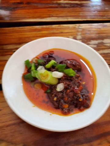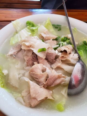 温江区的黄记花土肥肠粉是一个朋友带去吃的,中午去的时间有点晚,虽然连我们只有两桌,但是看的出来生意很火爆,很多菜都卖完了,点了一份回锅肉,一份凉拌牛肉,一个白肉汤,味道都还可以,就餐环境典型的苍蝇馆子,太差了,价格但是不贵,,而且门口好停车。