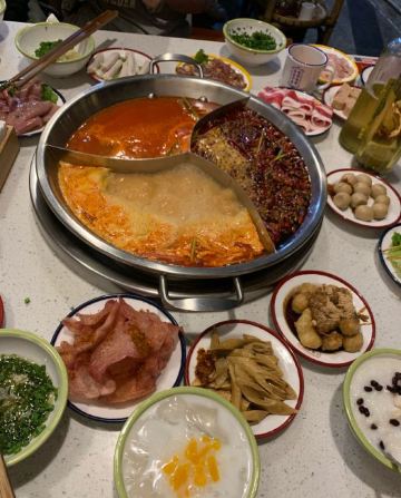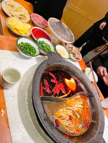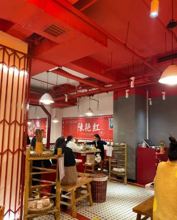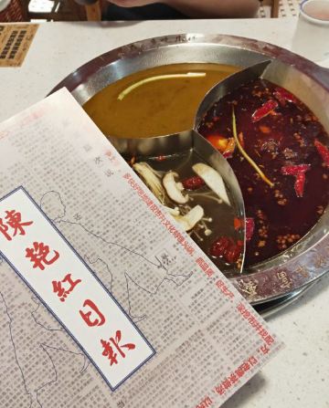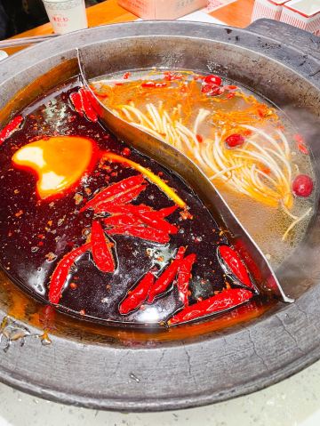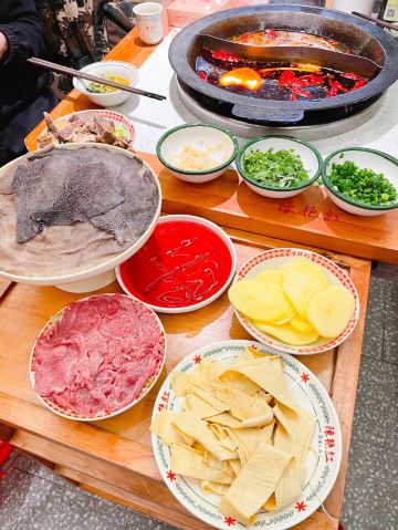 心灵宫殿《成都有种红叫做陈艳红》 提起成都,免不了要说火锅,成都是一座火锅纵横的城市,有传统气息浓郁的知名老派,也有流量巨星新晋的网红新派,陈艳红市井老火锅就是这样一家新派火锅代表。 这家陈艳红(春熙路旗舰店)位于成都市最热闹的商业中心春熙路步行街分支新街后巷子里。在成都旅游,走在人群拥挤,熙熙攘攘的春熙路步行街上,感受热闹的商业氛围,一眼就看到了店门口坐满排队等位的客人,你可以网上排号,或现场拿号,总之高峰期就是人多,拿好号至少也要等1小时左右吧,真的是很火。 关于陈艳红市井老火锅,之前真的没有听说过,没有吃过,今天总算见识了,什么是火锅流量。总算等到叫号了,本来还以为它叫市井火锅,有市井气,店内应该是比较杂乱的,但门面很新潮,进去之后发现体验感很不错,怀旧复古的80年代风格装修,和市井风格完全不同。整个环境鲜艳明丽,整体走的是原木色温馨路线,角落不时摆放淘来的上个世纪80年代的竹架,瓷杯,独轮车,老摆椅,座钟,缝纫机,保温瓶......让现场简洁但却怀旧,让人有一种家的感觉;基本都坐满了,很少有空桌,操作厨房也是透明玻璃的,让人看得见吃得更放心。 因为不知道店内招牌菜,点的联名推荐冬季暖身套餐系列,有锅底3选1(牛油红锅,番茄牛腩鸳鸯锅,松茸鸡汤鸳鸯锅),粑粑牛肉,屠场鲜毛肚,嫩牛肉,鲜血旺,土豆,豆皮等......选的牛油和松茸鸡汤鸳鸯锅底。 招牌菜耙耙牛肉,是店里的特色一绝,必点!一整盘里都是超级厚实的上等牛腩块,据说已经经过秘制香料腌制、加8小时焖煮的。在红油锅里滚上一圈,吸满汤汁,蘸干碟油碟后,一口下去真的棒,口感软糯又有嚼劲! 屠场鲜毛肚,每片都有巴掌大,下锅烫个几秒,特别脆,吃起脆嫩化渣,千万不能错过! 嫩牛肉,又大又厚的新鲜牛肉片,下锅裹上了一层火辣的牛油,独家秘方吃着过瘾,很是推荐! 鲜血旺,鲜嫩嫩的红,在红汤锅里煮过的鲜鸭血,那细腻爽滑的口感简直让人着迷。 土豆,将土豆片放入火锅中,煮熟后捞出来,美味十足,让人欲罢不能。而且土豆中含有丰富的膳食纤维,能够起到润肠通便的作用。 豆皮,涮好的豆皮完全吸收了红油的味道,非常的好吃,也算是颜值高的一道素菜,它还有很强的饱腹感呢。 整体套餐菜品还算很丰富哒,看起来很新鲜,还有免费水果。 陈艳红,只为真的市井记忆,怀旧着这里每一个人的初心,实现一代人的回忆,让你每一次寻常的煮沸都是人生百味!