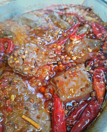 《成都有种红叫做陈艳红》 提起成都,免不了要说火锅,成都是一座火锅纵横的城市,有传统气息浓郁的知名老派,也有流量巨星新晋的网红新派,陈艳红市井老火锅就是这样一家新派火锅代表。 这家陈艳红(春熙路旗舰店)位于成都市最热闹的商业中心春熙路步行街分支新街后巷子里。在成都旅游,走在人群拥挤,熙熙攘攘的春熙路步行街上,感受热闹的商业氛围,一眼就看到了店门口坐满排队等位的客人,你可以网上排号,或现场拿号,总之高峰期就是人多,拿好号至少也要等1小时左右吧,真的是很火。 关于陈艳红市井老火锅,之前真的没有听说过,没有吃过,今天总算见识了,什么是火锅流量。总算等到叫号了,本来还以为它叫市井火锅,有市井气,店内应该是比较杂乱的,但门面很新潮,进去之后发现体验感很不错,怀旧复古的80年代风格装修,和市井风格完全不同。整个环境鲜艳明丽,整体走的是原木色温馨路线,角落不时摆放淘来的上个世纪80年代的竹架,瓷杯,独轮车,老摆椅,座钟,缝纫机,保温瓶......让现场简洁但却怀旧,让人有一种家的感觉;基本都坐满了,很少有空桌,操作厨房也是透明玻璃的,让人看得见吃得更放心。 因为不知道店内招牌菜,点的联名推荐冬季暖身套餐系列,有锅底3选1(牛油红锅,番茄牛腩鸳鸯锅,松茸鸡汤鸳鸯锅),粑粑牛肉,屠场鲜毛肚,嫩牛肉,鲜血旺,土豆,豆皮等......选的牛油和松茸鸡汤鸳鸯锅底。 招牌菜耙耙牛肉,是店里的特色一绝,必点!一整盘里都是超级厚实的上等牛腩块,据说已经经过秘制香料腌制、加8小时焖煮的。在红油锅里滚上一圈,吸满汤汁,蘸干碟油碟后,一口下去真的棒,口感软糯又有嚼劲! 屠场鲜毛肚,每片都有巴掌大,下锅烫个几秒,特别脆,吃起脆嫩化渣,千万不能错过! 嫩牛肉,又大又厚的新鲜牛肉片,下锅裹上了一层火辣的牛油,独家秘方吃着过瘾,很是推荐! 鲜血旺,鲜嫩嫩的红,在红汤锅里煮过的鲜鸭血,那细腻爽滑的口感简直让人着迷。 土豆,将土豆片放入火锅中,煮熟后捞出来,美味十足,让人欲罢不能。而且土豆中含有丰富的膳食纤维,能够起到润肠通便的作用。 豆皮,涮好的豆皮完全吸收了红油的味道,非常的好吃,也算是颜值高的一道素菜,它还有很强的饱腹感呢。 整体套餐菜品还算很丰富哒,看起来很新鲜,还有免费水果。 陈艳红,只为真的市井记忆,怀旧着这里每一个人的初心,实现一代人的回忆,让你每一次寻常的煮沸都是人生百味!