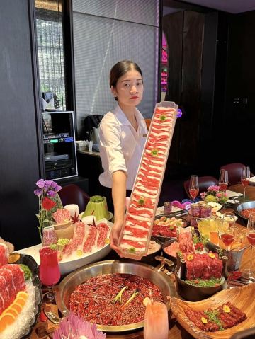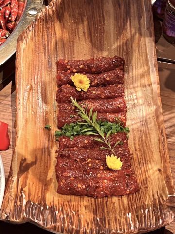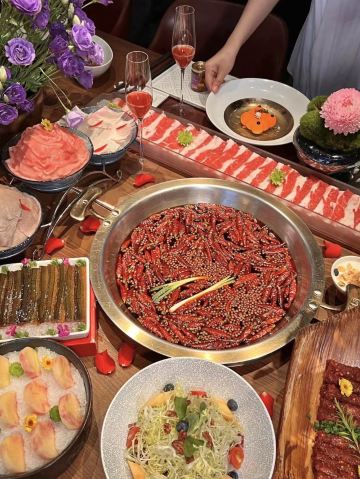 Gui Chang Hot pot (Mo Fang Branch)救命🆘这家火锅让我想一年过几次生日😭😭 👭好朋友过生日,我们约着去贵场火锅体验了一把生日宴,真的被他家给惊艳到啦!环境那叫一个绝美~大堂宽敞明亮~调酒吧台超有氛围 在这还能小酌一杯~ 他们家包间也很舒适 居然还能嗨歌!生日聚会来这儿简直太有面儿啦!一边次火锅 一边享受美酒和音乐🎵简直不要太惬意! 😜重点是性价比超高呀!!人均 200 以内就能拿下!锅底我们点了传统麻辣牛油锅底🍲味道醇厚浓郁,麻辣鲜香,绝了! 🥩菜品更是精致得不像话! √和牛四拼必须点呀 肉食爱好者的福音!一次性吃到厚切牛小排、M5 翼板肉、谷饲和牛牛舌、西冷牛肉四种口味的和牛,品质超高!稍微涮几秒,好吃到哭! √唐家寺臻选鲜毛肚 现撕的毛肚,老新鲜了~涮几秒就好咯,入口爽脆,有嚼劲,过瘾得很! √一米肥牛 也是分量十足,铺在一米长的木板上,直接实现肥牛自由,肥瘦相间,香嫩爽滑,炫就完事儿啦! 他们家真的把成都的“融合精神”展现得淋漓尽致呀,不只是火锅,还有各种把把烧和特色菜呢!真滴是来成都必打卡的美食体验地呀!