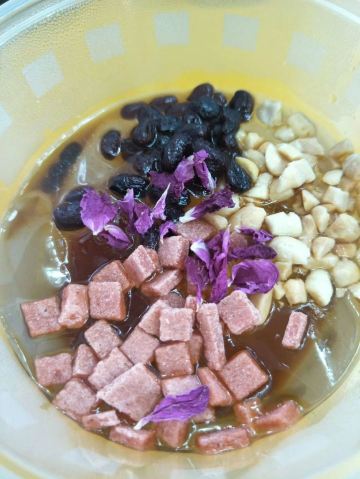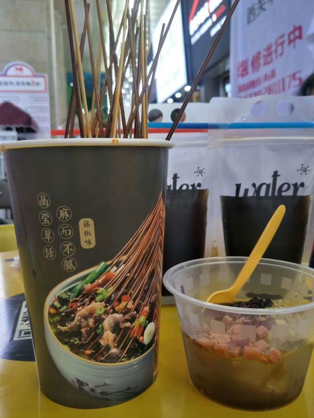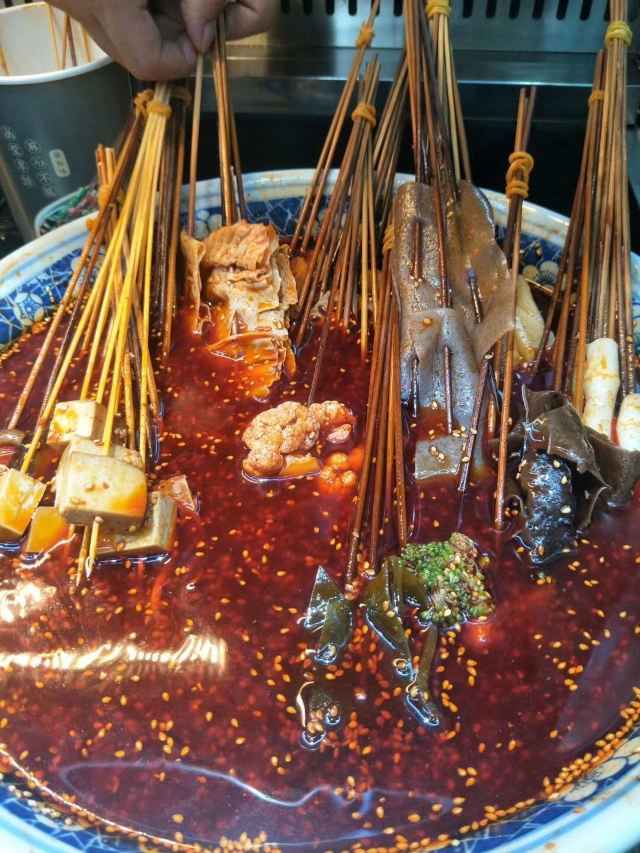 随便吃点,卖钵钵鸡的大叔好cool~没吃到鸡汤饭,不开心,还好有其他的素菜荤菜搭配着,麻辣鲜香吃起来好有味道,完了来碗冰粉更安逸。