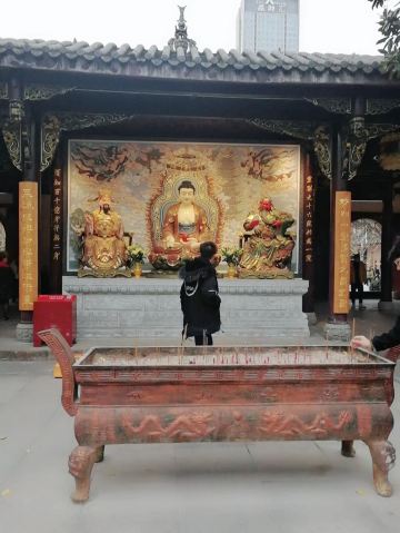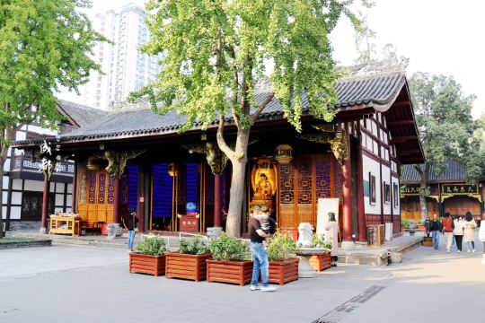 大慈寺地处最热门的太古里商圈内,与繁华的春熙路一街之隔,是喧闹都市中难得的一片净土。但是这里却是成都慢节奏的缩影,很多成都本地人在这里能耍上一整天:喝茶、聊天、掏耳朵,这一切就在大慈寺内的禅茶堂。 禅茶堂是一处空间很大的四合院,一个天井可坐二十几桌茶客,东西厢房也摆满了桌椅,体现出大慈寺的另一种接纳和宽容。这里的厢房和天井坐满了一桌桌的茶客,竹椅、矮桌、盖碗茶的标配,没有高大上的环境和设施,但人们一边聊天喝茶一边磕着瓜子,热热闹闹,这种闲适的氛围很容易感染游人。禅茶堂窗明几净,桌椅俨然。茶堂正中,观音在上;其下一桌,铺陈黄缎。桌前有两张木制靠背椅,一茶几,皆古色古香。寺院西角,隔墙相处的就是春熙商圈,相较于文殊院、昭觉寺,处于成都最繁华地段的大慈寺,的的确确是“闹市最核心处的禅院”。 我是顺时针,一个爱旅行爱摄影爱打卡的大龄青年,旅行已是我生命中的必修课,是我生活不可或缺的一部分,我爱随性随意的随拍,也爱分享我的旅程心得和体验,如果你觉得我的笔记有帮助到你,请随手给个赞鼓励哦。