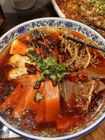 SHUNXING卧槽。。成都。。果然很超前。。 确实是成都老辈子会喜欢的。。。带长辈来聚餐被夸了一个星期….喝茶聊天看表演,真的太惬意了!! 浓厚的川西风格设计,满满的老成都市井烟火气 场地特别大,有40多个包间,宴请聚餐都🉑️!! 吃饭的同时可以看变脸、川剧、功夫茶艺这些 演员老师特别专业!!很震撼!!时不时还要互动啥的 外地朋友来我一定会带他去的地方~ 菜品都是传统川菜,没一个踩雷的!! 招牌毛血旺、夫妻肺片、糖油果子、小吃九宫格!可以在这里吃到各种地道老成都味道! 毕竟是国宴大厨出品,菜品品质真的没得说 强烈建议来成都一定要来这里!!!