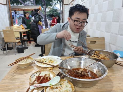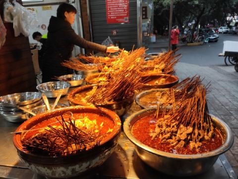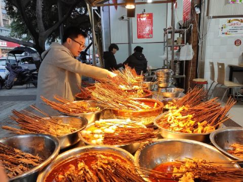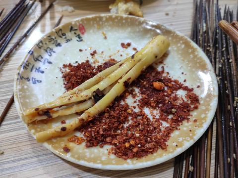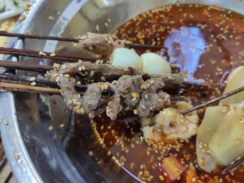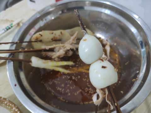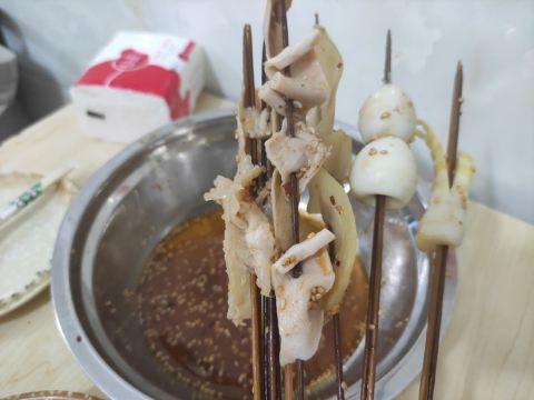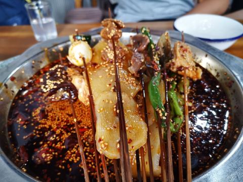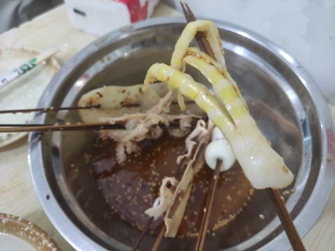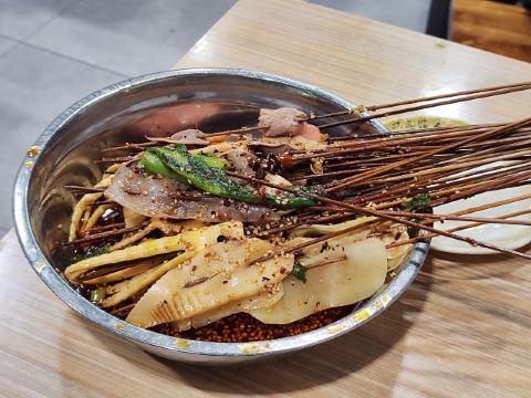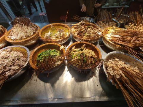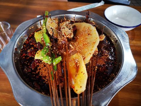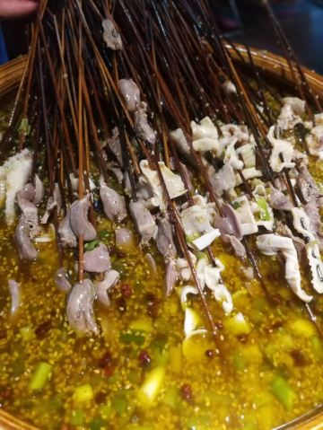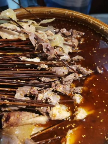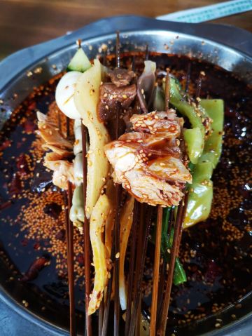 在杜甫草堂附近的一家店,钵钵鸡其实就是冷串串,但是很香很麻辣,一定记得把竹签抽了泡在那个红油汤里,才够味。门店一看就是标准的“苍蝇馆子”,不用太在意就餐的环境,人气自然是旺的不得了,菜品种类丰富,价格也很实惠。