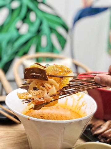 鸡汤烫饭,鸡脚,土豆片,笋尖,鹌鹑蛋,蛋炒饭,冰粉,钵钵鸡,鸡爪子劲,鸡杂串串,素菜串串,凉糕,鸭血,莴苣,必推钵钵鸡,西兰花,笋子,脱骨鸡爪,木耳,花菜,绿色蔬菜,藤椒味儿,莴笋尖,红油钵钵鸡,牛肉,藤椒钵钵鸡,椒麻味钵钵鸡,鸡汤白菜