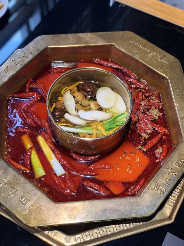 川式火锅,九宫格造型的红汤确实有创意,方便捞取;味道出彩,蘸料齐全,自行调味。生意好,经常需要排队。