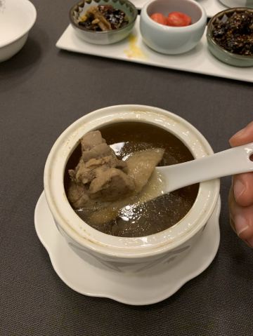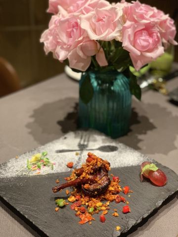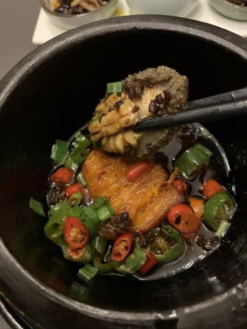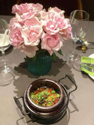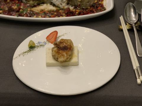 摩小亚总评: 环境还是蛮不错的,服务也还可以,菜品呢无亮点! 对这家餐馆还是小有期待的,所以有些失望。 或许是其他人的好评让我有了过高的期许吧。 团购吃吃还行,原价是真不值得哟! 我这一次餐是原价,所以觉得不会再去光顾了。 评分:70分 性价比:❤❤❤ 上周的某一个下班时间,小雨淅沥沥的下个没停,气温降了不少,大家走在路上都是急匆匆的,都想快点到达自己的目的地。 而这家餐厅没有停车场,也没有占道停车位,只能停车去对面浣花溪公园的地下停车场。 恩,是真的有些麻烦,况且还降温还下雨,这来回两趟,让我有些觉得有些后悔不该选择它。 两个单人套餐,上菜的时候店员有一道一道的介绍菜品名字和食材,做个做得挺好的。 可是能不能给客人准备一份这份套餐的书面菜单呢?这样方便客人自己看,也更有仪式感呀。 【开胃三小蝶】酱鸭舌味道还凑合;麻辣牛肉太硬了,口感太差;泡萝卜感觉是来凑数的; 【松茸土鸡汤】鸡汤虽然不油腻,但是鲜度不够,喝起来有些乏味,也就比白开水强点; 【芝士焗澳龙虾仔】油!实在是太油!油渍在黑色的石盘上显得特别明显,看着很不美观~! 【石锅南瓜扣鲜鲍】还是油!他们店怎么这么下狠手呢,少点油不行吗?但是川香滋味还是蛮好的,南瓜入味,可惜被浸泡在了油水里; 【香酥掌中宝】口感倒是不错,脆脆酥酥的金色颗粒,只是还是很油啊!太不健康! 【黄金三色米扣辽参】好看,但是不好吃,三色米的口感我并不喜欢,辽参品质也不太好; 【川椒辣子桂鱼】这道菜我还是蛮喜欢的,看起来辣椒很多,但只是香不会很辣,吃的时候尽量蘸着汤汁,这样会更入味一些,鱼肉还多嫩; 【日式浇汁鹅肝】味道和口感是不错的,配了一片面包算是解腻,但是鹅肝我还是更喜欢浅浅煎一下的好; 【什么牛肋排】一大块扎实的大肉,还是有点香,但是有些干有些硬,注意火候哟; 【雪里脊爆澳带】滑滑嫩嫩的,口感不错,带子也是我喜欢的食材。但是!真的好油! 写了这么多我都累了,能不能适量少放一些油呢?放弃“油多不坏菜“的执念吧。