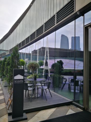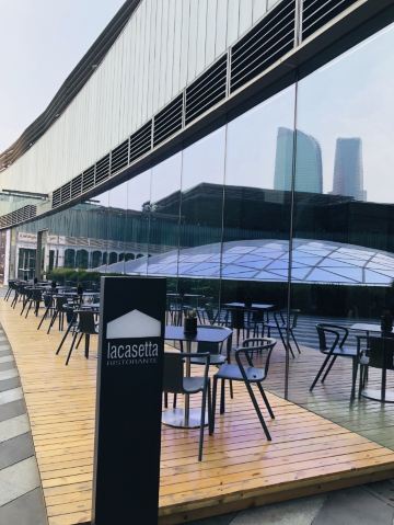 位置在八楼,坐1号电梯,出电梯左手边就是他家,招牌相当低调,只有la casetta的英文,有室外的座位,室内不算大,大致分成了黑、白色调的两个区域。一定要尝尝他家的牛舌,能做得这么嫩还这么入味太难得了。披萨是薄皮的,配蘑菇汤正合适!