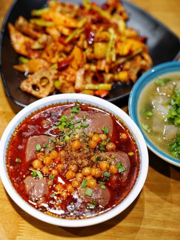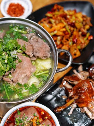 跷脚牛肉,鲜血旺,粉蒸牛肉,牛肉汤,火爆脆肠,乐山甜皮鸭,火爆牛肉丝,粉蒸肥肠,脑花烧豆腐,脊髓烧豆腐,火爆牛肝,米饭,牛肉小锅,乐山特色煎饼