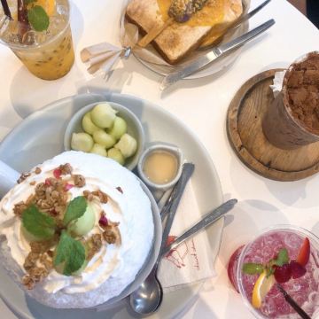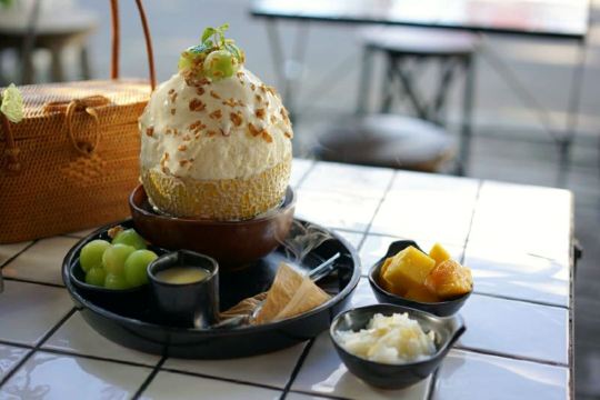 Cheevit Cheeva清迈第一冰店! 搁到世界各地都得在一线网红排名里稳占一席的那种 随便哪个冰都太好吃了叭! ᴍᴇʟᴏɴ ғʀᴇsʜ ᴄʀᴇᴀᴍ & ɢʀᴀɴᴏʟᴀ 日本密瓜香甜多汁不用多夸 雪花冰顶上几个蜜瓜球 自制奶油和谷物 底下还埋着大颗大颗蜜瓜球 最惊喜的是清甜滑嫩的椰子奶冻 一起大勺往嘴里送 绝了 (可惜菜单上的干冰造势败给了炎热的天气) ᴄʜᴇʀʀʏ ᴄʜᴇʀʀʏ ᴍᴜᴄʜ 去年夏天的季节限定 顶上樱桃奶油和大颗饱满的车厘子 再单独淋上樱桃酸奶 双层奶香双份甜美 他家每份冰底下都是惊喜 挖出满满的曲奇碎和樱桃果酱的时候 “哇哦”!! ʀᴏʏᴀʟ ᴛʜᴀɪ ᴛᴇᴀ & ᴄᴜsᴛᴀʀᴅ ᴘᴜᴅᴅɪɴɢ 沉迷于泰茶 分层又稳又美 他家布丁的蛋奶焦糖香味很浓 质感嫩滑超好吸! 他家还有个招牌是咸蛋黄冰 之前在曼谷吃的 总之 没去大树底下的玻璃房子里吃盆冰 清迈就是不完整的
