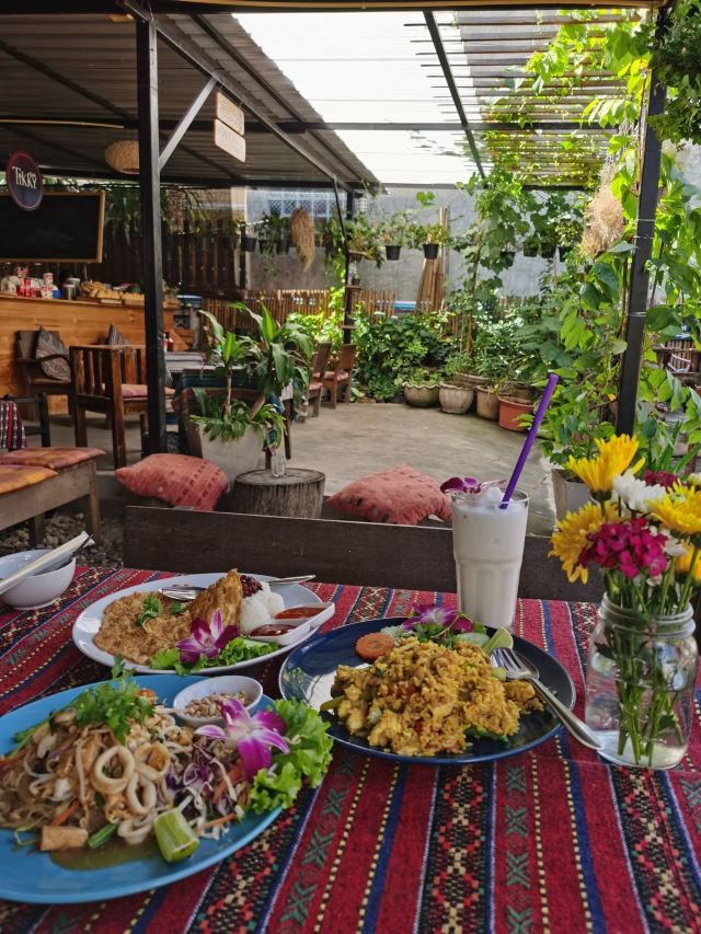 又是一家很喜欢的泰国餐厅加咖啡店,这才是印象中传统泰国餐厅的样子,没有太多设计感,但就是简简单单加上一些植物和慵懒的气氛,加上热情的员工,还有就是这家是我在清迈现在让我感觉量比我想象还大的餐厅,可能由于之前几天吃泰餐的量少的经历,今天在这里绝对点多了。