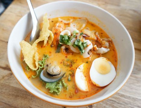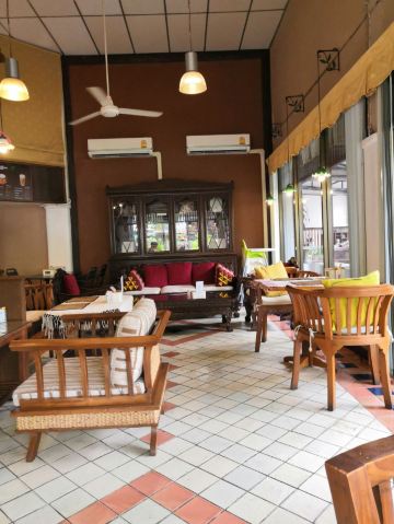 餐厅在清迈古城内,有个独立的小院子,院子里有露天座位,舒适惬意,屋内是美式咖啡店的装潢,非常简约干净。虽然是咖啡店,但有很多食物可选。这里的冬阴功汤很正宗,配了大虾、番茄、蘑菇等,料很足,有淡淡的椰奶味,口感不会太激烈。