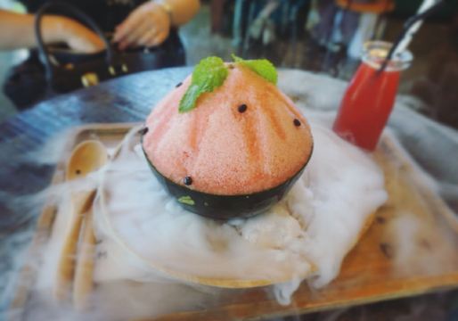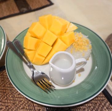两个人点了一个套餐189B里面有图一的面和芒果糯米饭,芒果沙冰,再点了个饭小份的90B。店不大,但是人挺多的,环境比较安静,适合坐坐休息下