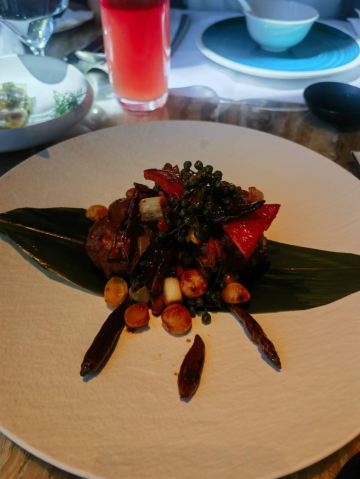 夫妻肺片,鱼子酱烤鸭,招牌黑椒澳洲M3安格斯牛仔粒,烟熏茶香童子鸡,咖啡小骨排,酸甜柚子咕噜肉