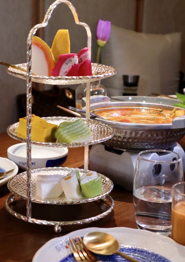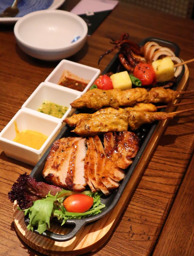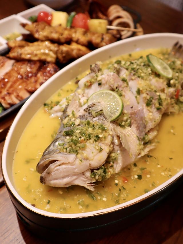 炭烧大拼盘,点心拼盘,咖喱皇大虾,冬阴功汤,咖喱皇炒蟹,马来咖喱牛腩,青柠檬蒸鲈鱼,菠萝海鲜炒饭,咖喱牛腩,泰式冻腌生虾,香兰叶西米糕,芒果椰汁糯米饭,泰式猪颈肉