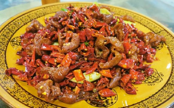辣子肥肠吃过之后回味无穷,那股香味会一直在舌尖舞蹈,让你不停地吞口水。 肥肠的分量并不少,随便翻一下就能找出一大堆,从量的角度看,两三个人是完全够吃的,但从味道来看,这一盘两三个人完全不够吃!