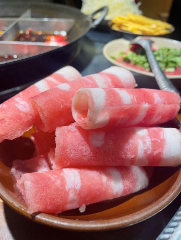 竹荪虾滑,精油鲜毛肚,鲜鸭肠,秘制耙牛肉,鲜鸭血,板栗南瓜