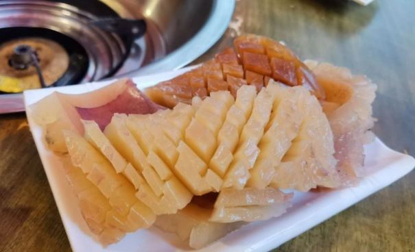 麻辣牛肉,鱿鱼,秘制干油碟,蟹肉棒,嫩肉片,自制午餐肉,红苕粉,串串,鸭血,红汤锅底,圆子,水晶牛肉,麻辣烫,姜妹牛肝,毛肚,鸡心