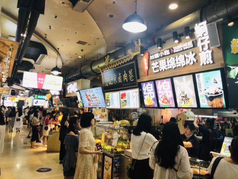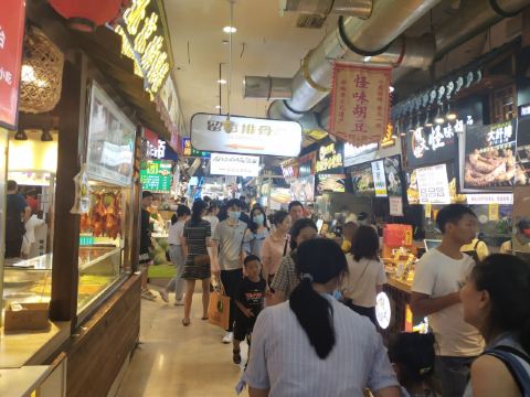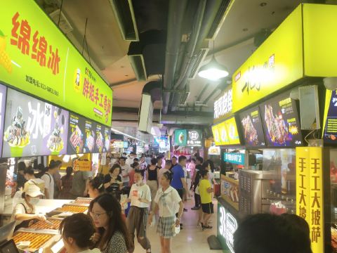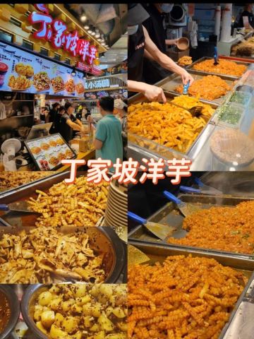 筱风姿最喜欢逛的就是这种类似的小吃街 热闹的小吃街看着就是让人喜欢,可以选择的店铺超多,什么种类的美食都有了,而且不是只有一层,有好几层哦…… 当然在重庆,永远不知道自己走在第几层,以为是一层楼,但是走进去发现已经在楼上3层了,里面还有好多楼梯走下来的,这就是8D山城的特色啊。 坐标:观音桥步行街8号星天广场3楼 交通:地铁3号线观音桥站 ⏱营业时间:10:30-22:00 人均:¥50.00 亮点:小吃品种多,而且这算是本地人来的比较多的好吃街了,据说“游客解放碑、本地人观音桥”那么可见,这里更贴近本地生活了。 小吃品种众多,烧饼、冰粉、酸奶、酥肉、串串等等,人多美食也多。