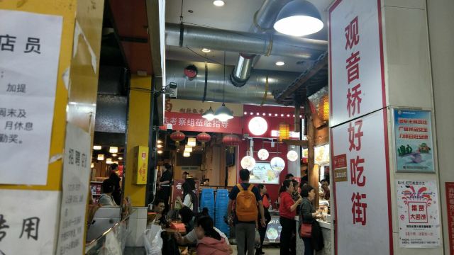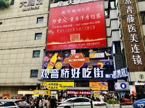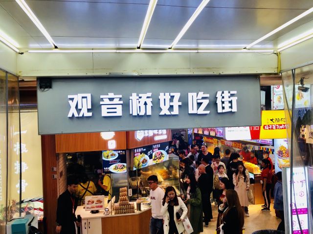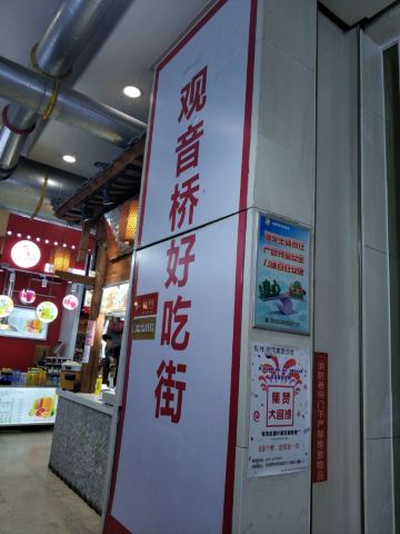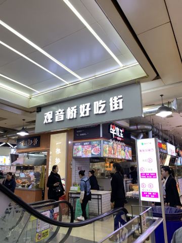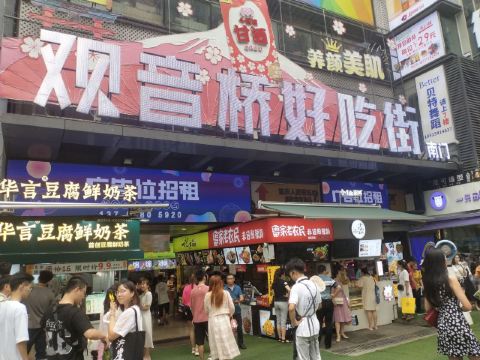 Guanyinqiaohaochijie观音桥好吃街是重庆著名的美食小吃街。在观音桥步行街商圈旁边,这里面各种重庆美食小吃很多,有很多网红小店。口味都很不错,人很多,性价比高。像大脸猫梅干菜扣肉饼、大脚板烧饼、嘿皮土豆片、烧仙草等小吃店都值得推荐!