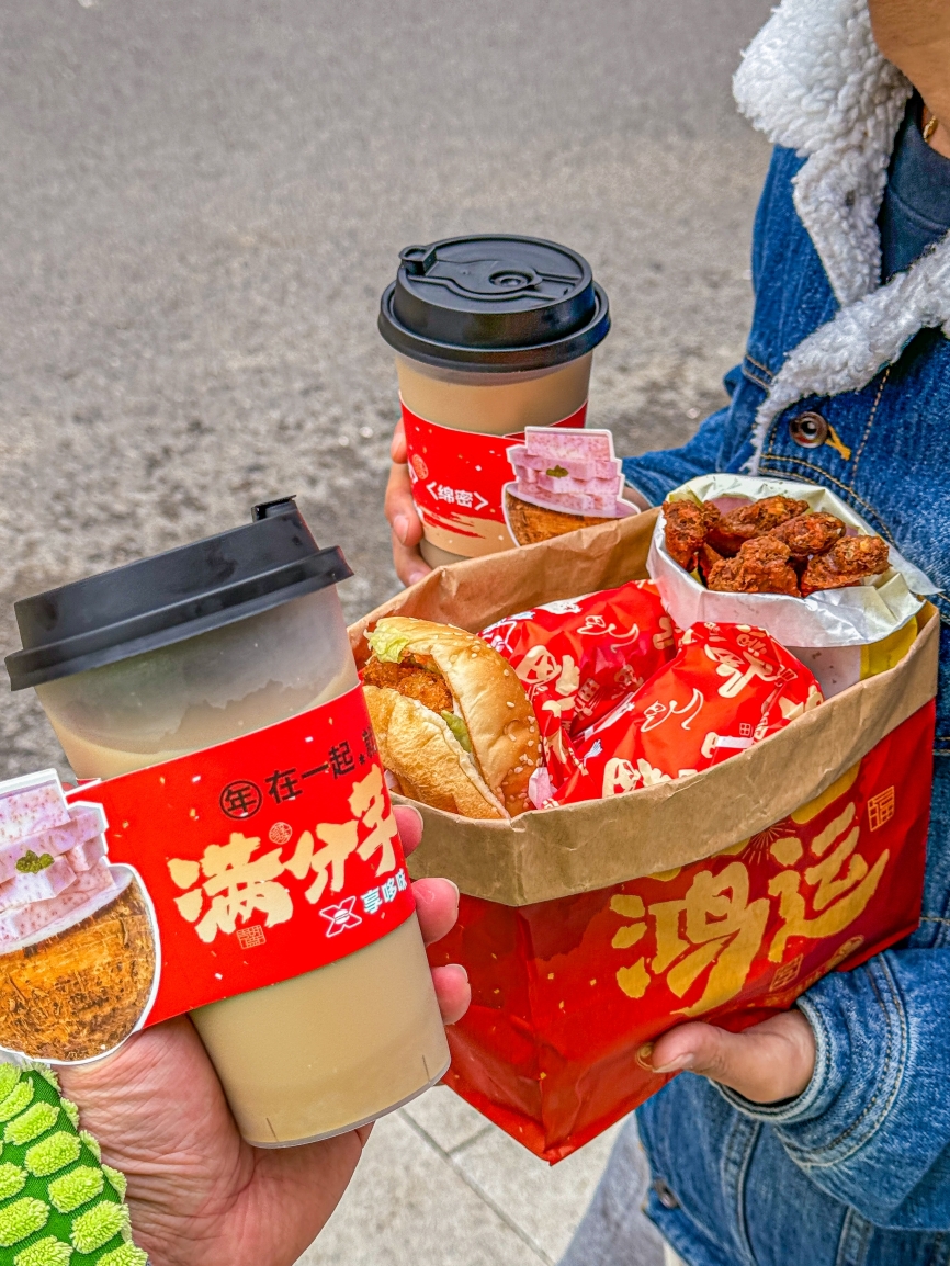 牛奶,烤肉卷,蜜汁烤堡,超享午餐,超享晚餐,腿堡单人餐,香辣鸡翅,原味奶茶,香芋甜心,黄金蝴蝶虾,番茄酱,☕咖啡