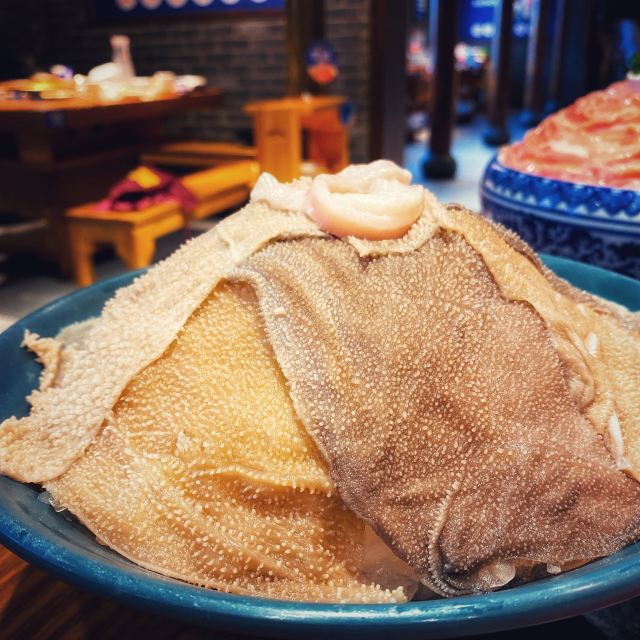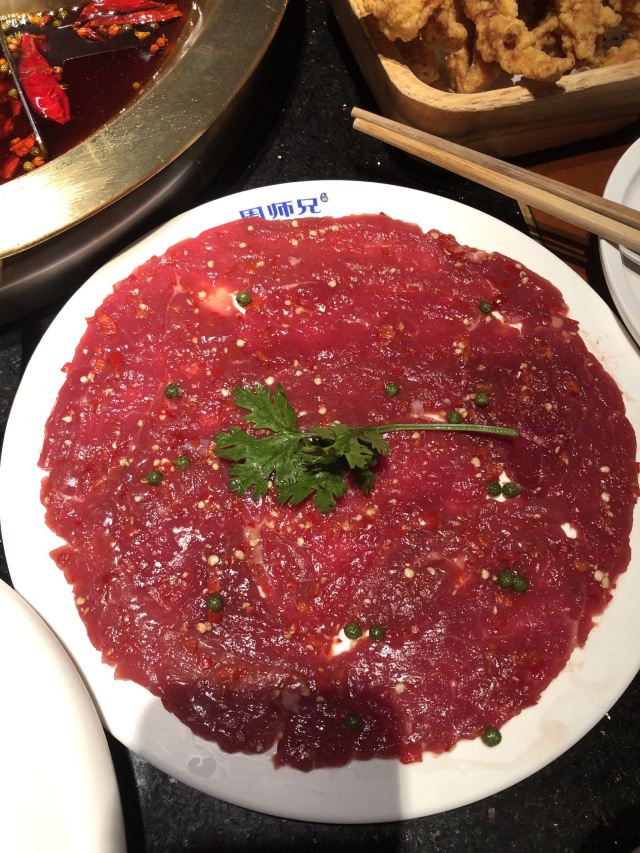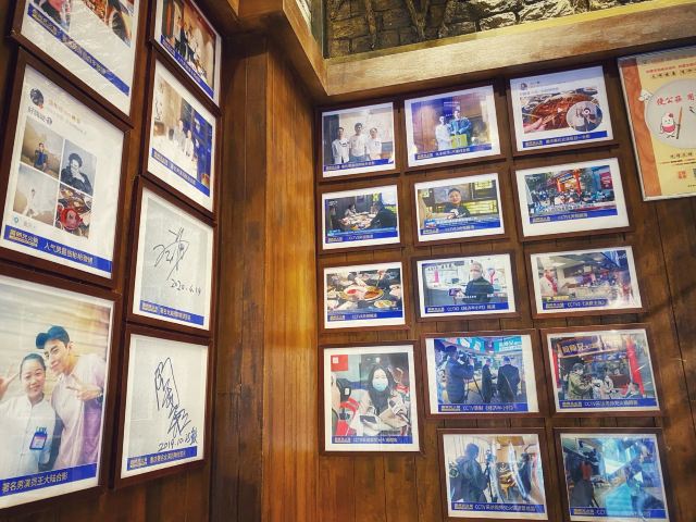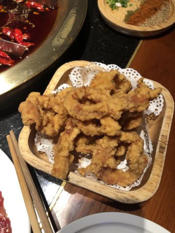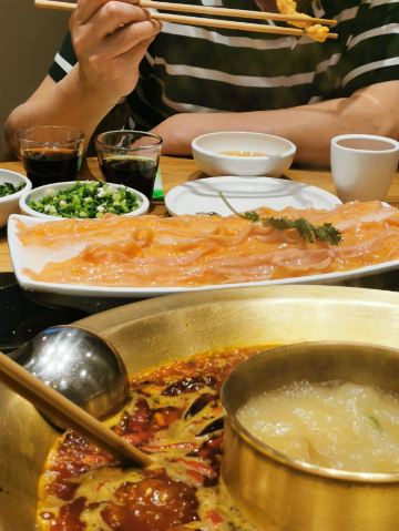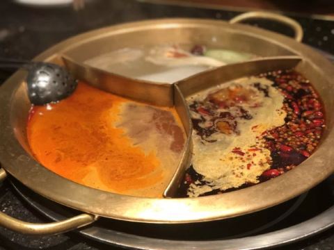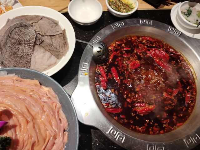洪崖洞附近 选了观音桥的分店 错过高峰期 工作日中午14:30还在排队 人气实在是太旺了 终于排到15:00入席了[笑哭] [薄荷]环境: 一层透明的厨房 全开放式火锅菜品处理台很是干净卫生 沿着楼梯上去墙面是明星打卡的照片墙 二层用餐区汇聚着巴渝文化底蕴的装修风格 很是古色古香 「红油锅底」 随着锅底慢慢沸腾 红椒翻腾 香气浓郁扑鼻而来 瞬间点燃味蕾 锅底味道很鲜美 但是不够辣[调皮] 「特级水牛毛肚」 随便拎一片都比脸还大的鲜毛肚 很新鲜 七上八下 很清脆 「生扣鲜鸭肠」 新鲜粉嫩的鸭肠 光看色泽就能想象它入口的脆爽 烫涮15秒最佳 在嘴里是“咯吱”的爽脆 超级新鲜 「重庆特色冰粉」 和在上海吃的冰粉不一样 上面还有酒糟 非常爽口 [调皮]还可以解辣 [服务铃]服务: 服务还不错 小哥非常热情 最后的冰粉还是小哥送的 服务非常好 最后,价格非常便宜 性价比实在是高