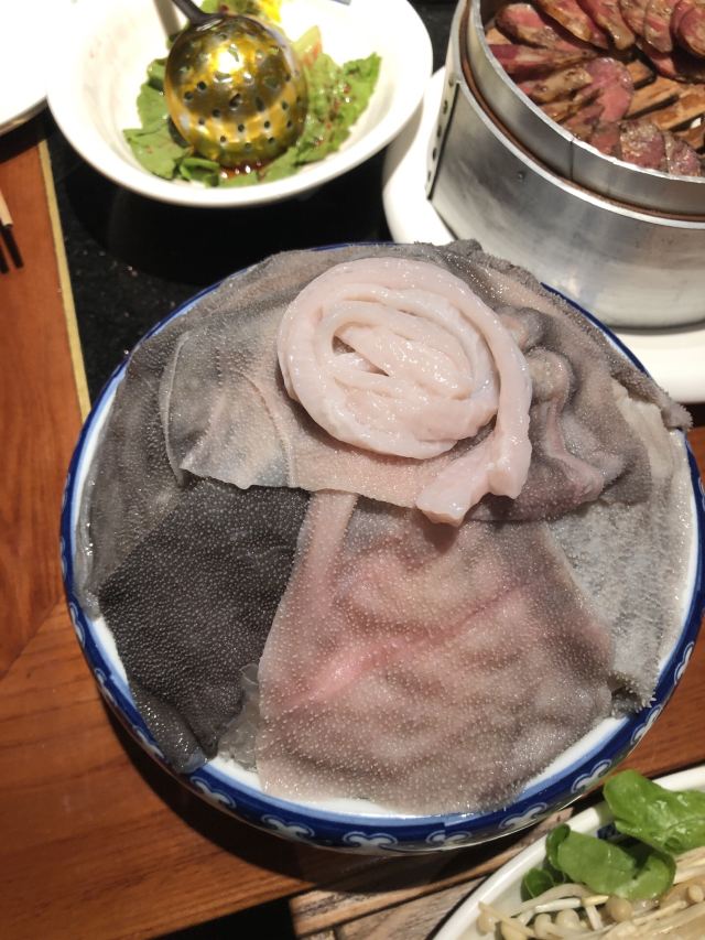 雪黎不是雪梨洪崖洞附近 选了观音桥的分店 错过高峰期 工作日中午14:30还在排队 人气实在是太旺了 终于排到15:00入席了[笑哭] [薄荷]环境: 一层透明的厨房 全开放式火锅菜品处理台很是干净卫生 沿着楼梯上去墙面是明星打卡的照片墙 二层用餐区汇聚着巴渝文化底蕴的装修风格 很是古色古香 「红油锅底」 随着锅底慢慢沸腾 红椒翻腾 香气浓郁扑鼻而来 瞬间点燃味蕾 锅底味道很鲜美 但是不够辣[调皮] 「特级水牛毛肚」 随便拎一片都比脸还大的鲜毛肚 很新鲜 七上八下 很清脆 「生扣鲜鸭肠」 新鲜粉嫩的鸭肠 光看色泽就能想象它入口的脆爽 烫涮15秒最佳 在嘴里是“咯吱”的爽脆 超级新鲜 「重庆特色冰粉」 和在上海吃的冰粉不一样 上面还有酒糟 非常爽口 [调皮]还可以解辣 [服务铃]服务: 服务还不错 小哥非常热情 最后的冰粉还是小哥送的 服务非常好 最后,价格非常便宜 性价比实在是高