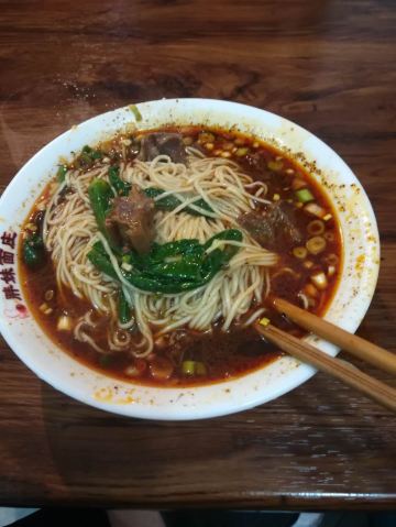 重庆小面界也算有头有脸,排得上名的馆子,味道不用多说,这个人流量,这些个奖牌,丘二都10多个的馆子,还有什么说的!真香,确实好吃,红红的辣油,配上软糯的牛肉,安逸!挑面的应该就是胖妹老板,够霸气,利索麻利的动作,想必这么火热的生意,也是挣得盆满钵满!馆子环境不关注,毕竟是老苍蝇馆子,味道巴适!如果非要说缺点,就是份量太少,2两面是绝对吃不饱的[调皮]
