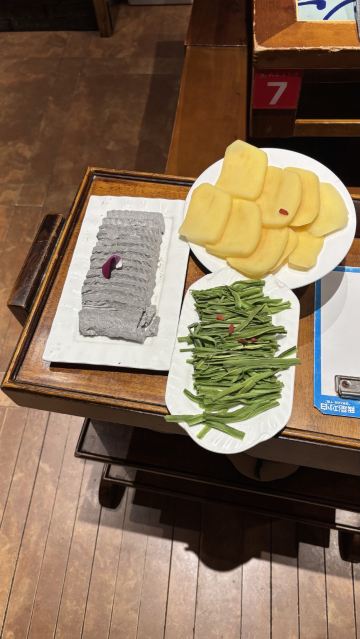 麻辣牛肉,现炸酥肉,红糖糍粑,梅林午餐肉,老豆腐,方竹笋,社员自发鱿鱼,土豆,冰粉,现摘金针菇,勇气牛肉,老火锅,知青滑肉,鲜毛肚,鲜鸭肠,大队长麻辣牛肉,知青豆花,村长毛肚,村长鹅肠,村长鸭肠