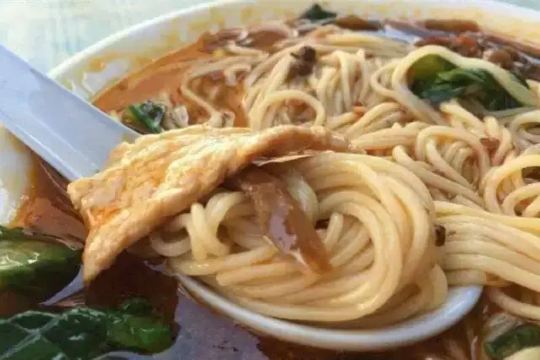 回头米线的招牌就是酸菜米线,配菜以肉片、猪肝为主,可以自主选择。值得一提的是,酸菜和泡椒味道很足,米线入味特别好吃。喜欢清淡口味的小伙伴,就来一份三鲜米线吧,味道也很不错呢。不少食客也都提到回头米线旁边的凉虾,跟米线搭配起来爽口解辣非常不错